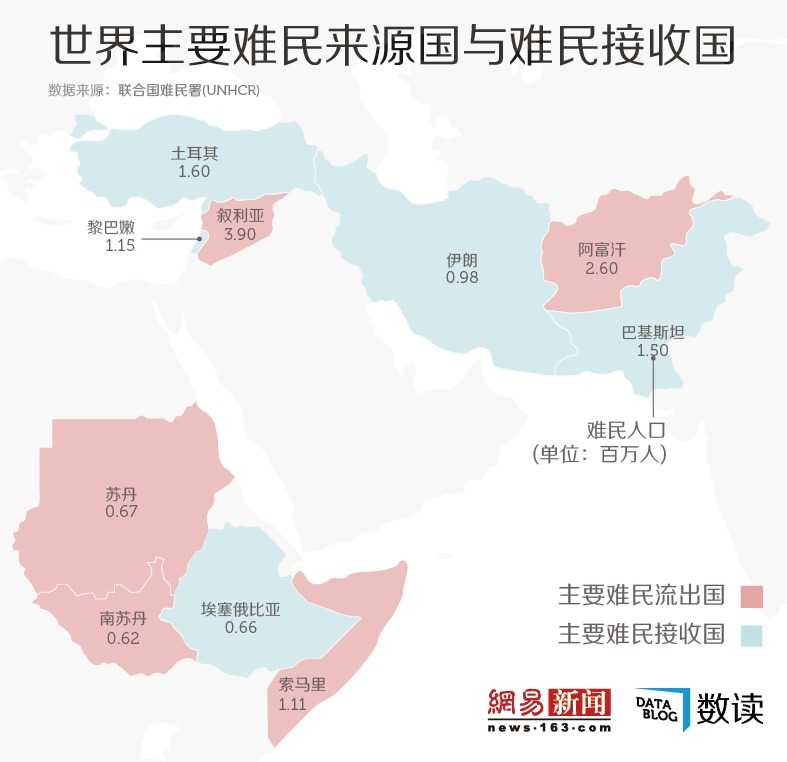世界难民输出国在地理分布上十分集中,都位于中东到东非一带。