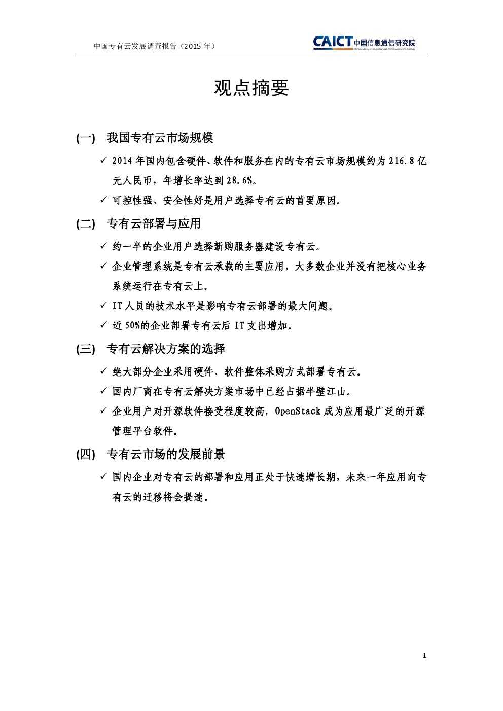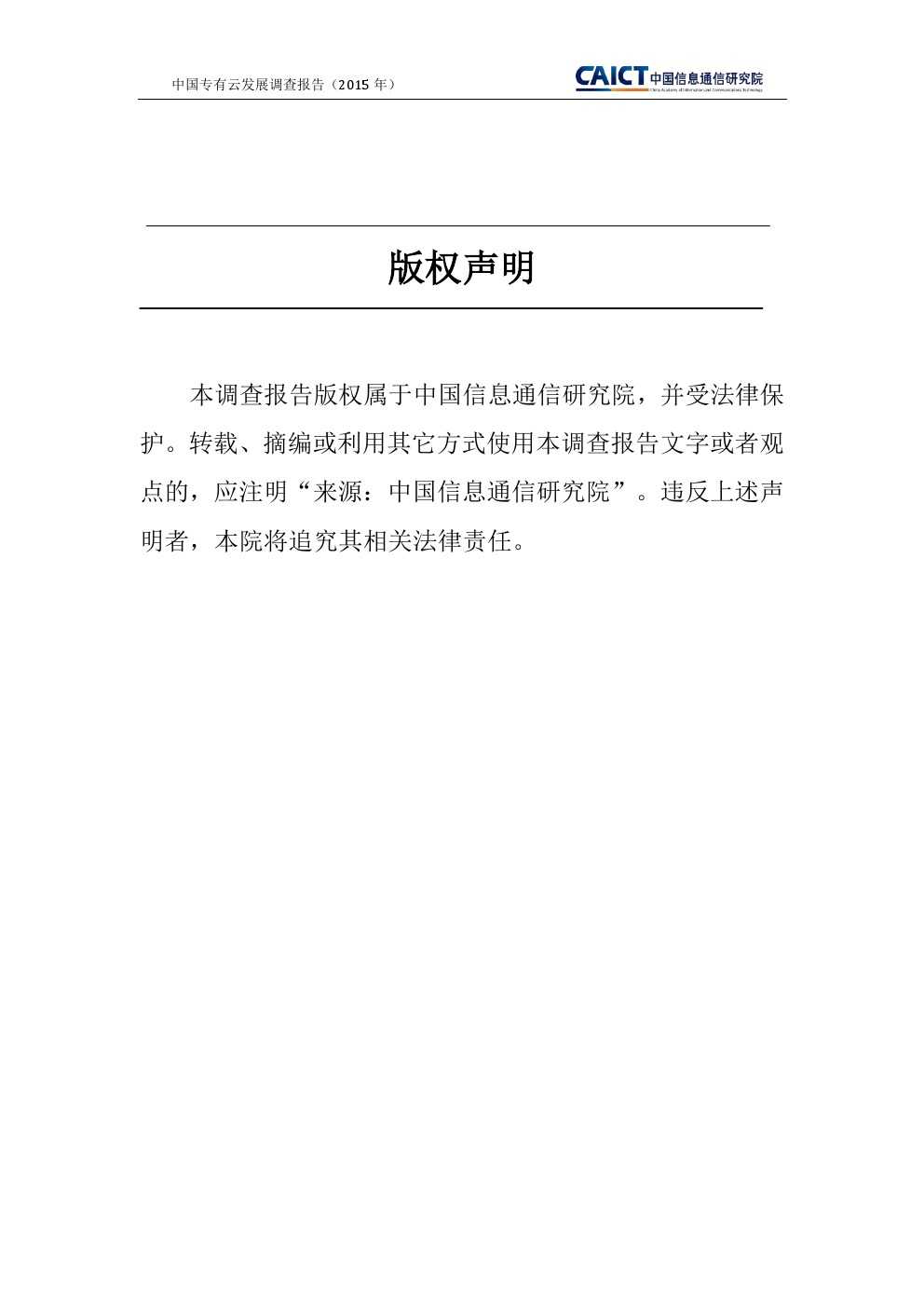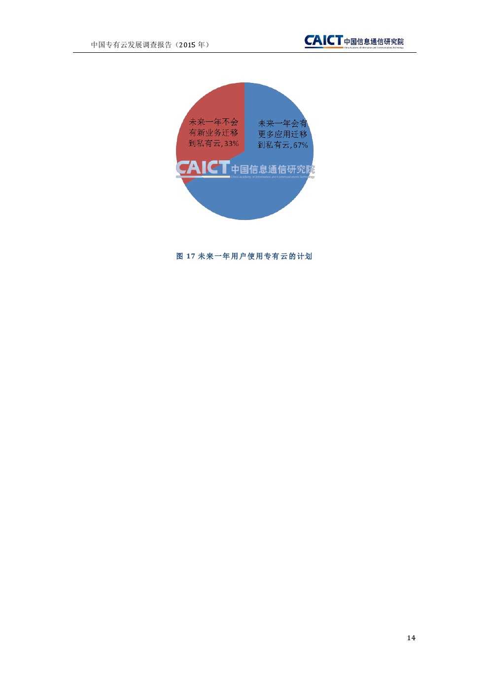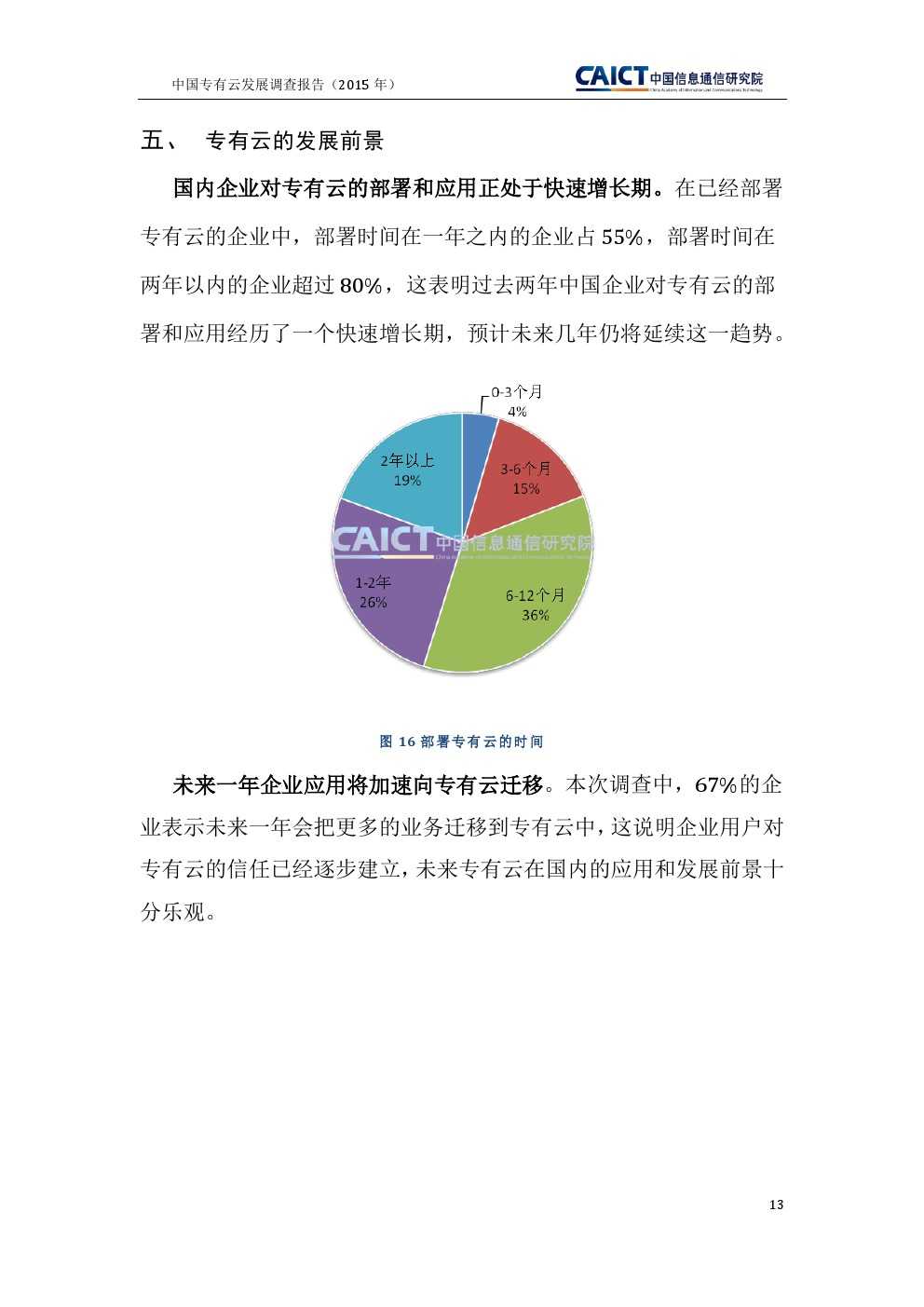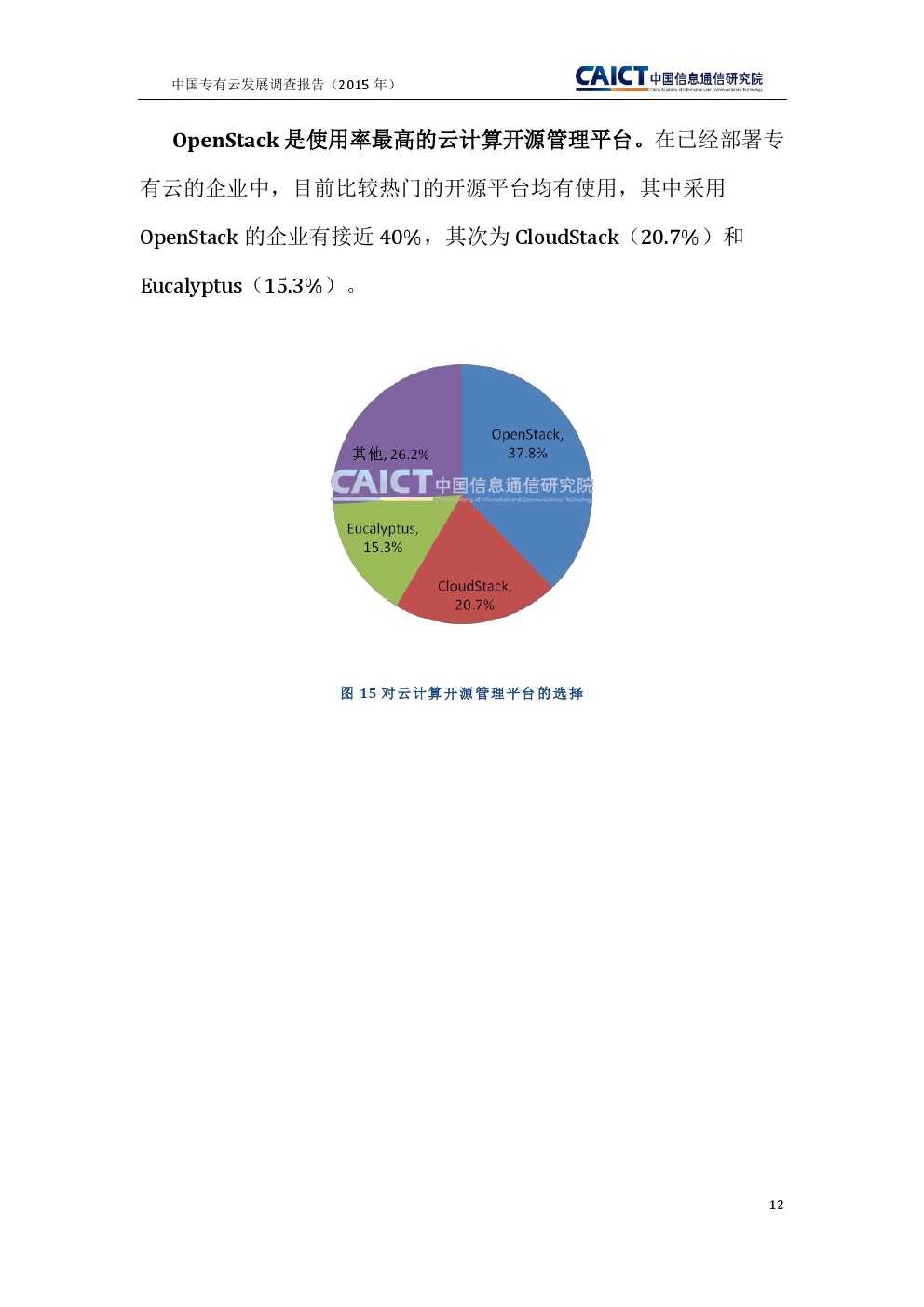 2015年中国专有云发展调查报告 更多阅读:2015年中国公共云服务发展调查中国信息通信研究院:2015年中国信息经济研究报告武书连:2015年中国大学排行榜Topdigital&妈妈帮:2015年中国母婴互联网营销新思维与新趋势Nielsen:2015年中国突破性创新报告CAICT:2015年中国大数据发展调查阿里妈妈:2015年Q2中国汽车消费车主洞察Deloitte:2015年中国移动消费者行为CNNIC:2015年第37次中国互联网络发展状况统计报告–企业“+互联网”广泛应用(五)CNNIC:2015年第37次中国互联网络发展状况统计报告–互联网基础资源(二)CNNIC:2015年第37次中国互联网络发展状况统计报告–企业应用篇(三)AVC:2015年中国家电市场环境解析CNNIC:2015年第37次中国互联网络发展状况统计报告–网民规模与结构(七)CNNIC:2015年第37次中国互联网络发展状况统计报告–个人互联网应用发展状况(九)CNNIC:2015年第37次中国互联网络发展状况统计报告-摘要(一)