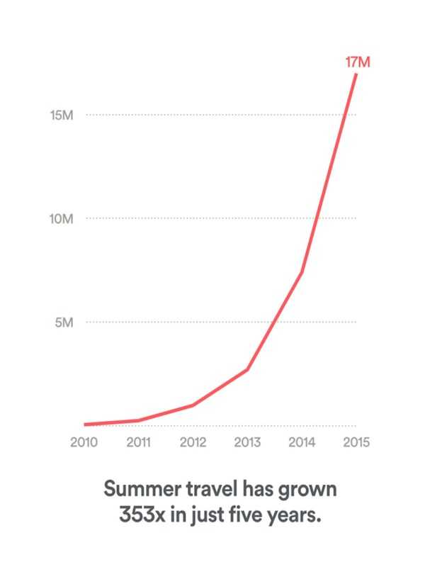 今夏选择Airbnb住宿的旅行者数量比去年同期增加了一倍多,其中来自亚洲的增长帮助今夏创公司历史新高。