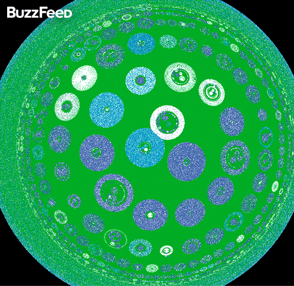 最初,Buzzfeed认为数据可以表示为一个单一的树状图。但后来发现,每一条内容都有成百上千的初始分享者,他是他自己这棵树的根节点。每条内容的Pound图看起来更像是一片森林,而不是一棵树木。在这片森林中,树木可以看上去完全不同。有些是胖的(有很多下游节点),有些是瘦的;有些是深的(有很多层次),有些是浅的;有些是跨网络传播(不同的平台)的,有些则不是。整个传播的森林结构蕴含着内容传播的细节。