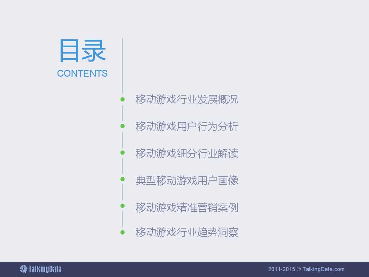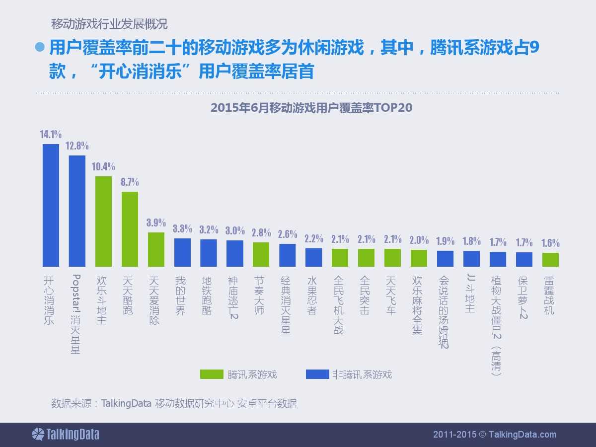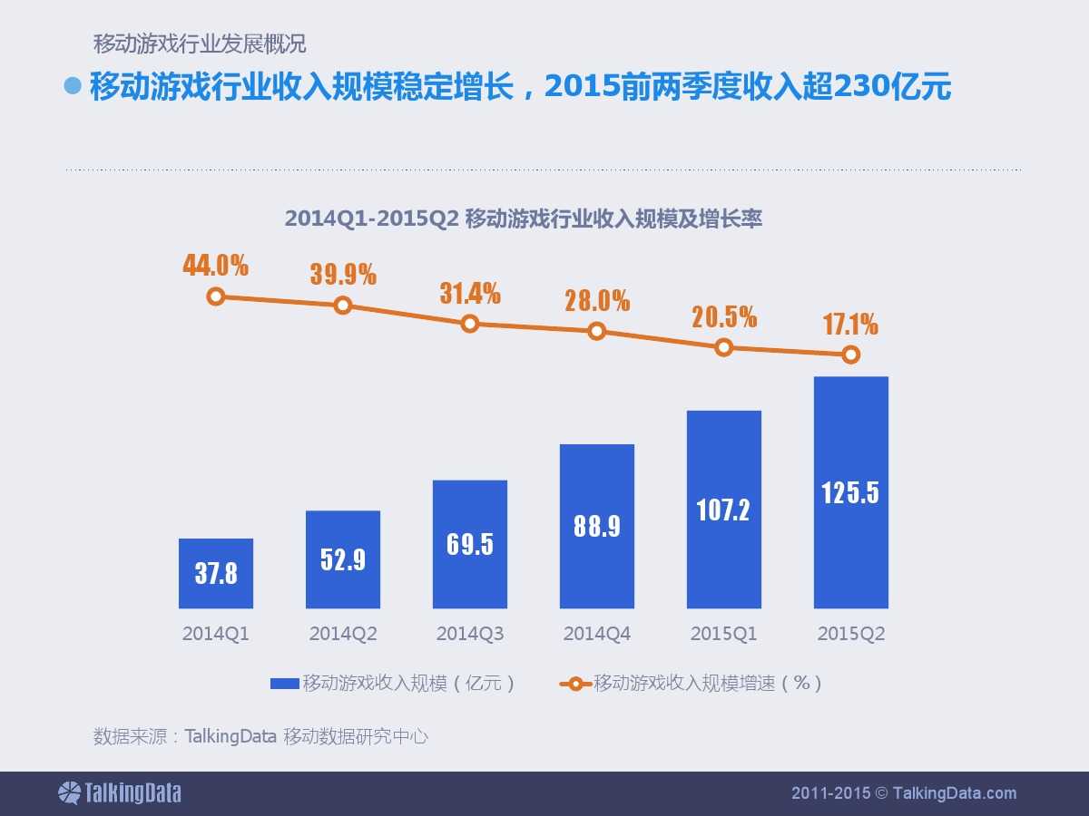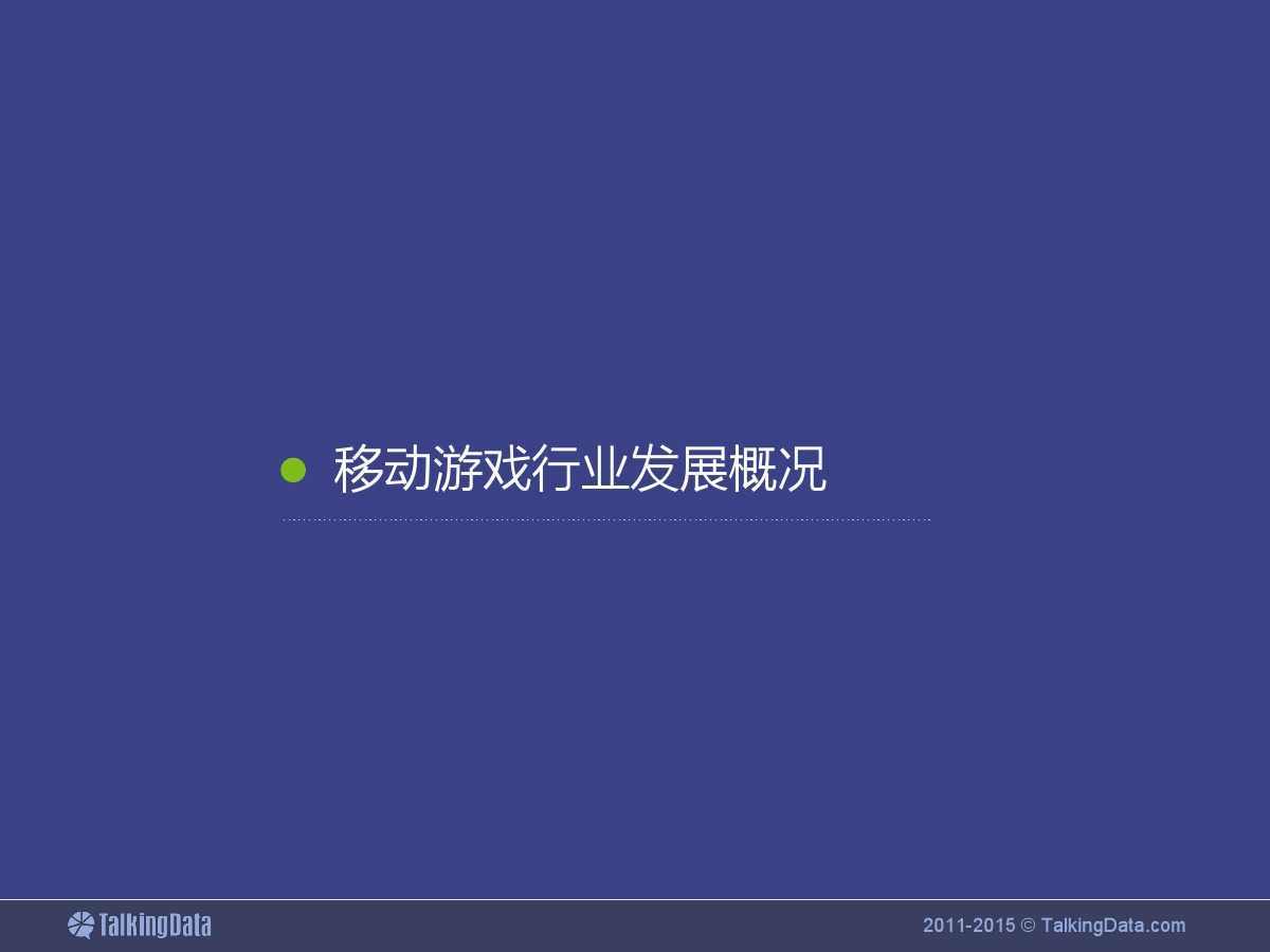 TalkingData:2015上半年移动游戏行业报告 更多阅读:TalkingData:2015年10月移动游戏BenchmarkTalkingData:2015年9月移动游戏Benchmark指标数据Newzoo:2015年中国移动游戏收入将达到65亿美元TalkingData:2015年8月移动游戏BenchmarkTalkingData:2015年7月移动游戏Benchmark指标数据TalkingData:2015上半年移动游戏行业报告TalkingData:2015年5月移动游戏BenchmarkTalkingData:2015年4月移动游戏Benchmark指标数据TalkingData:移动游戏运营数据分析指标白皮书SensorTower:2024年东南亚移动游戏市场洞察中国音数协:2025年1-6月中国游戏市场收入1680亿元,同比增长14.08%Sensor Torwer:2025年移动游戏市场报告Sensor Tower :2024年5月全球热门移动游戏收入TOP10SensorTower:2024年5月全球热门移动游戏下载量TOP10Sensor Tower:2024年4月全球热门移动游戏下载量TOP10