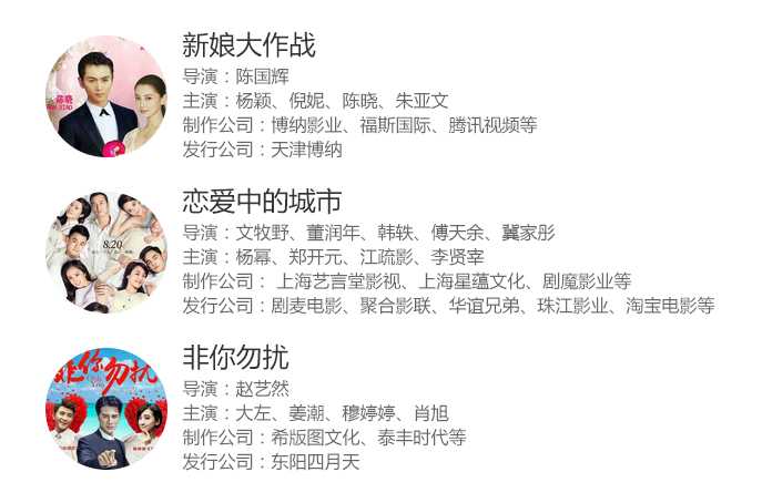 主创阵容:《新娘大作战》杨颖认知度领先《恋爱中的城市》众星云集