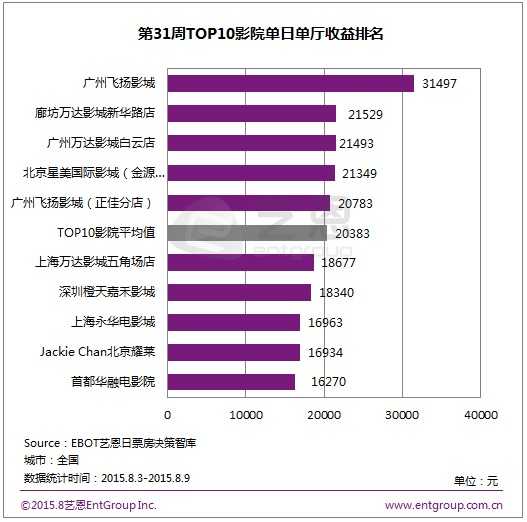 TOP10影城平均单日单厅收益达20383元 5家影城超平均