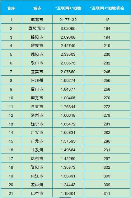 4.成都、南充、甘孜、巴中等地“互联网+”发展领先宏观经济