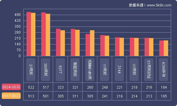 点评:《天书世界》本周在迅雷牛X页游的开服频率下滑明显,开服占比减少10.6%,其他平台开服占比均有不同幅度的增加;新增分布占比9377、快玩游戏。