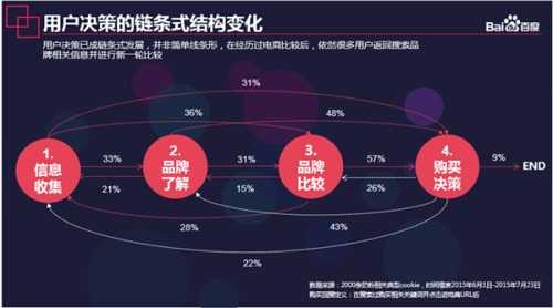 显然,仅有这些是不够的,来看看基于2000多个典型用户(1个半月搜索奶粉相关词20次以上)cookie的路径分析,我们发现用户的检索并不是一次始于信息收集,止于购买决策的规律行为。它有可能开始于任一点、终止于任一点,并且在发生购买决策(搜索电商相关信息并发生跳转)后回过头来继续收集信息、了解和对比品牌。面对如此无迹可寻的检索行为,我们需要快速整理崩溃的心情,深入了解用户对品牌的认知和需求。