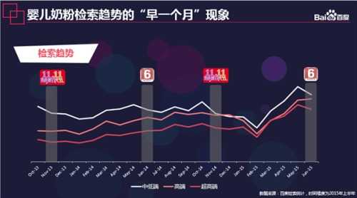 用户检索趋势同时显示,每逢电商节日的前一个月,用户检索达到高峰,电商节当月反而有所下降。