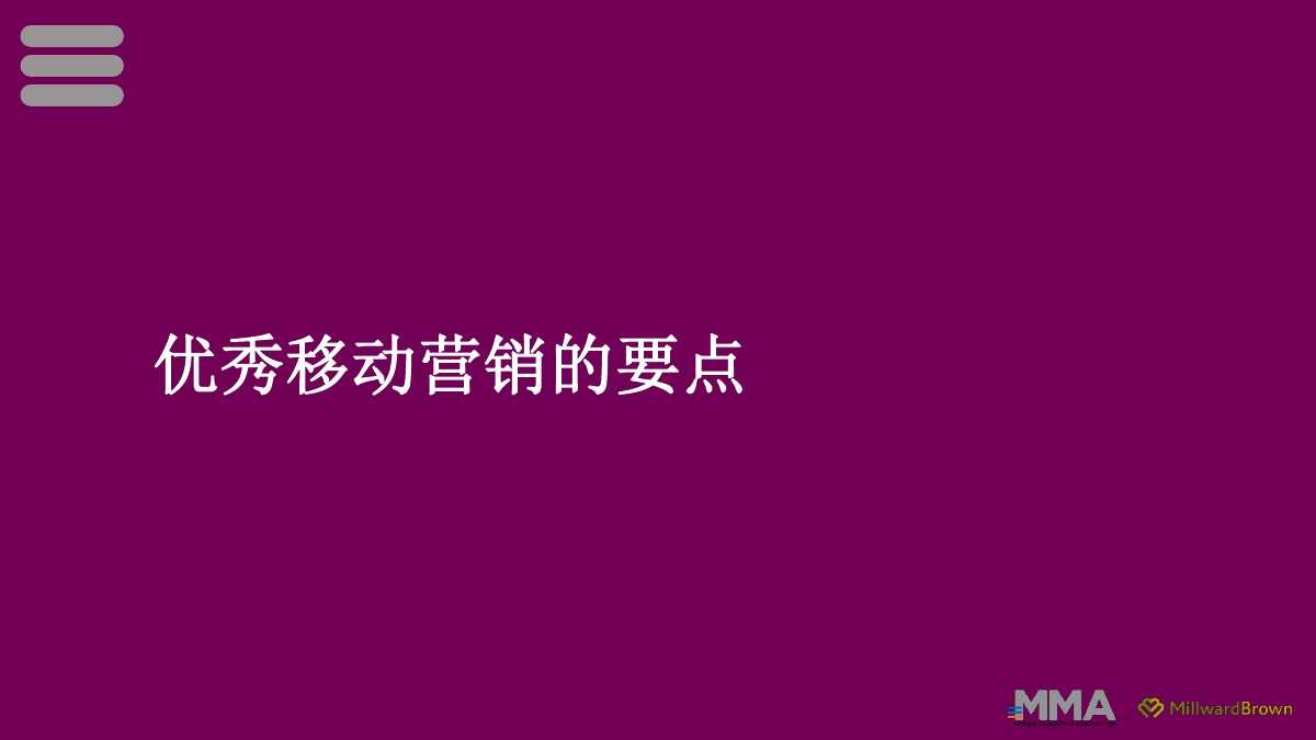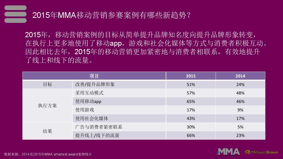 MMA:2015移动营销案例研究 更多阅读:MMA:2012年西班牙移动广告高速增长P2P行业海外企业案例研究—zopa–信息图品途咨询:在线票务网站案例研究——大麦网CMI:数据显示B2B内容营销手段中现场活动最有效MMA:人类大脑只需要1/2秒就能对移动广告产生印象eMart:71%的印度网络营销人员认为移动营销已经成为业务核心Apps Flyer:全球移动营销指数秒针系统:2015年移动视频的价值和整合应用白皮书Warc:2015年亚太地区移动营销报告信息图:移动营销的十七个提示大数据时代移动营销的十大趋势Jumptap:智能终端尺寸大小对广告点击影响甚微AppsFlyer:2016-2018 应用30天保留率增长5%LBS移动营销如何更有效的贴近消费者?移动营销意味着什么?–信息图