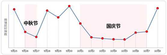 据了解,十一期间长三角的高速是流量最大的区域,其中去往苏州、南京和杭州方向的车流最为集中,且拥堵主要发生在9月30号14:00至10月1号14:00。