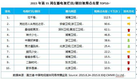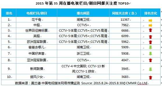 美兰德:2015年第35周电视节目网络传播指数 更多阅读:美兰德:2015年第32周电视节目网络传播指数美兰德:2015年第28周电视节目网络传播指数美兰德:2015年第31周电视节目网络传播指数美兰德:2016年第13周电视节目网络传播指数美兰德:2015年第51周电视节目网络传播指数美兰德:2015年第50周电视节目网络传播指数美兰德:2015年第29周电视节目网络传播指数美兰德:2015年第28周电视节目网络传播指数美兰德:2015年5月4-10日第19周电视节目网络传播指数美兰德:2016年第20周电视节目网络传播指数美兰德:2015年第49周电视节目网络传播指数美兰德:2015年第34周电视节目网络传播指数美兰德:2015年第33周电视节目网络传播指数美兰德:2016年第14周电视节目网络传播指数美兰德:2015年第37周电视节目网络传播指数