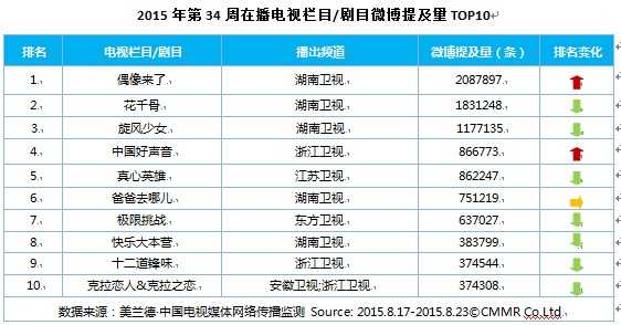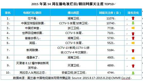 美兰德:2015年第34周电视节目网络传播指数 更多阅读:美兰德:2015年第32周电视节目网络传播指数美兰德:2015年第35周电视节目网络传播指数美兰德:2015年第28周电视节目网络传播指数美兰德:2015年第31周电视节目网络传播指数美兰德:2015年第33周电视节目网络传播指数美兰德:2016年第14周电视节目网络传播指数美兰德:2015年第51周电视节目网络传播指数美兰德:2015年第50周电视节目网络传播指数美兰德:2016年第13周电视节目网络传播指数美兰德:2015年第29周电视节目网络传播指数美兰德:2015年5月4-10日第19周电视节目网络传播指数美兰德:2015年第28周电视节目网络传播指数美兰德:2015年第37周电视节目网络传播指数美兰德:2016年第20周电视节目网络传播指数美兰德:2015年第49周电视节目网络传播指数