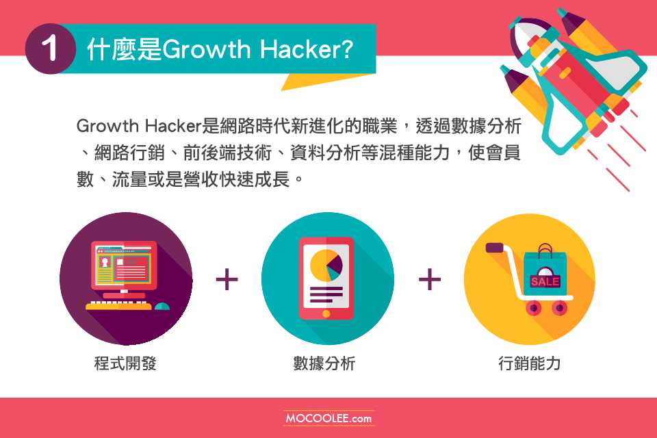Growth Hacker 是網路時代新進化的職業,透過數據分析、網路行銷、前後端技術、資料分析等混種能力,使會員數、流量或是營收快速成長。