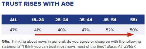 对媒体的信任度随着年龄、受教育程度和收入而增长。偶尔使用者相较而言更不信任媒体。