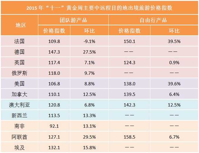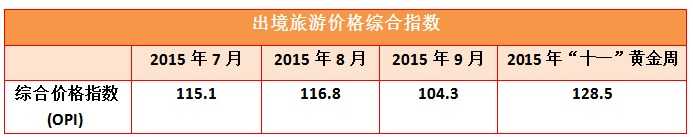 一、2015年“十一”黄金周出境旅游价格综合指数