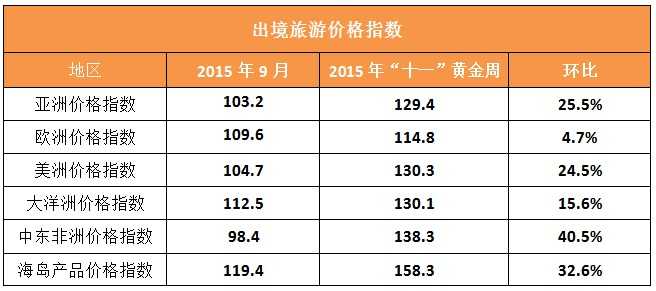 《2015出境旅游价格指数报告――“十一”黄金周特辑》正式发布,报告显示十一黄金周出境旅游价格综合指数(OPI)为128.5,与9月份相比增长23.2%。