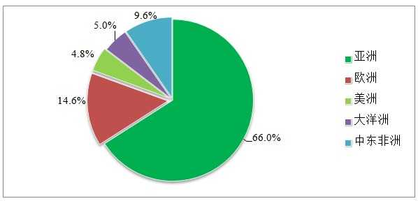 基于2015年“十一”黄金周出境旅游大数据采集结果,亚洲游产品数量占比为66%,欧洲游产品占比为14.6%,美洲产品数量最少,占比为4.8%。从产品数量结构分析,国庆黄金周产品中,近程亚洲目的地产品所占比例与9月相比出现下降,而中远程目的地尤其是欧洲及中东非洲产品数量所占比例有所上升,说明“十一”黄金周期间出游远程线路较火热。从采集产品数量来看,“十一”黄金周出境游排名前十热门国家(地区)为:泰国、马尔代夫、日本、韩国、巴厘岛、普吉岛、阿联酋、毛里求斯、塞班岛、美国。