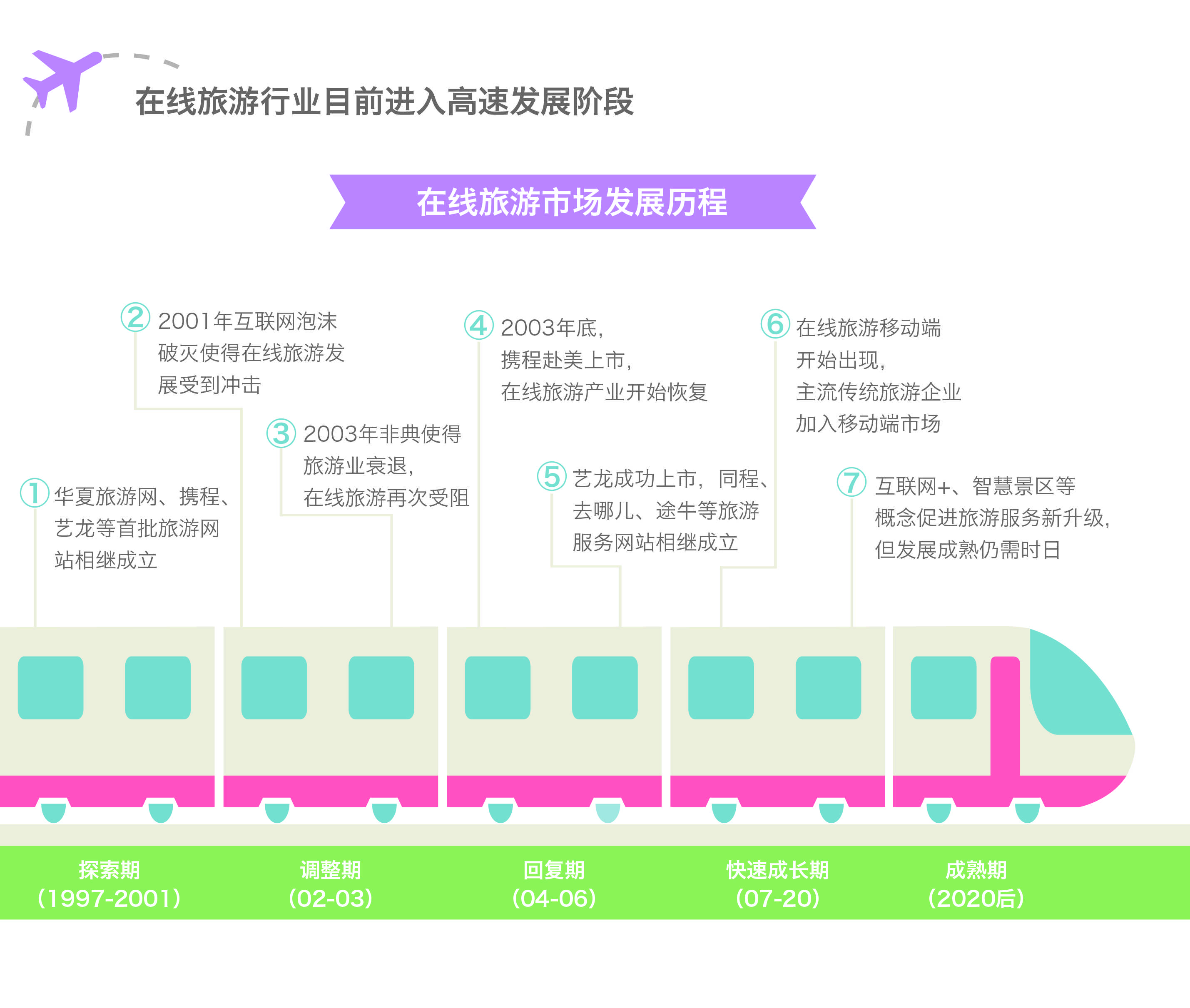 线下旅行社与线上旅行社融合加快,大型线下旅行社也在线上提供服务,而大型线上企业通过投资线下旅游社涉足线下,在线旅游行业将逐渐淡化。