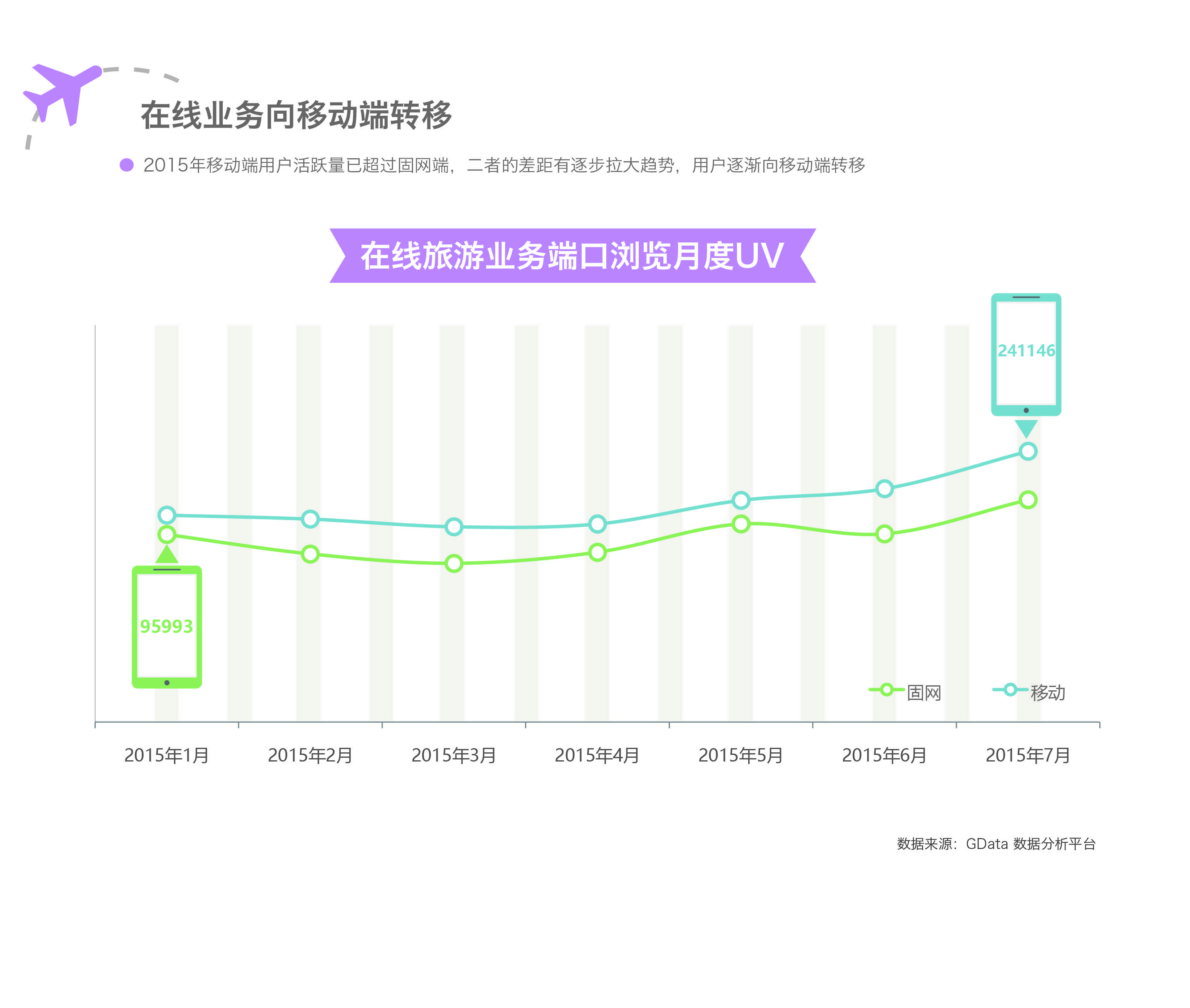随着移动互联网的发展,旅游在线服务不断向移动端迁移,移动端活跃度逐渐超越PC端。