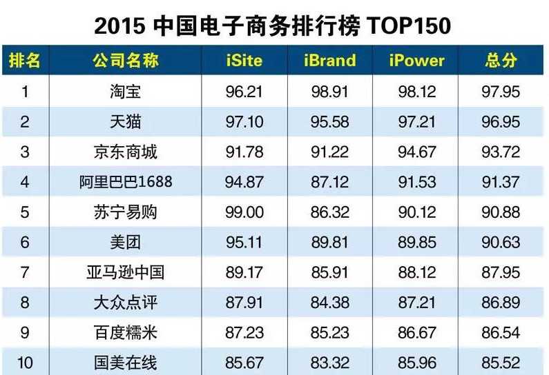 2015年中国电子商务企业排行榜 2015年已经过去了多半年,中国的电子商务整体趋于平稳。在B2C领域,阿里系淘宝、天猫、京东等电商巨头仍占据着较大优势,占据了B2C电商交易额中的较大部分。根据《2015上半年中国家电网购分析报告》显示,在经历了上半年一系列大促之后,京东的销售额在整体家电网购市场占比达到了60%,同比增长了2%,而天猫则下降了4%,其空出的份额被苏宁易购与国美在线等电商所蚕食。 来自:互联网周刊 更多阅读:钱塘大数据:2018年中国大数据企业排行榜商务部:2019中国电子商务报告(182页)GlobalWebIndex:电子商务在中国、德国和英国最为普遍阿里研究:2014-2015年中国电子商务园区发展报告Westwin:2018年中国跨境消费研究项目报告2013—2014年中国农产品电子商务模式发展报告阿里研究中心:2013年中国县域电子商务发展指数报告商务部:2018中国电子商务报告Nielsen:过去5年中国电子商务增长10倍 给消费者和品牌都带来了机遇WeAreSocial:2015年8月中国互联网、社交、移动和电子商务最新数据天下网商:数据解读中国服装电子商务走向何方?(上)eMarketer:2017年中国跨境零售电子商务销售额将达到1106亿美元eMarketer:中国超过美国成为全球最大零售电子商务市场帮5买:2014年3月中国电子商务价格数据报告数据解读:亚洲电子商务的未来–信息图