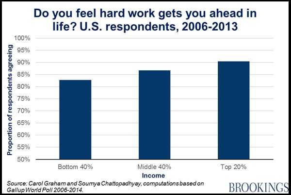 上层中产阶级更愿意相信美国梦,他们努力工作、积极进取,部分是因为他们相信美国梦适用于自己: