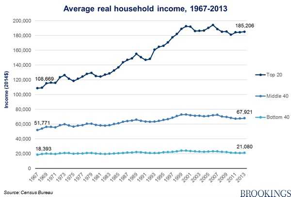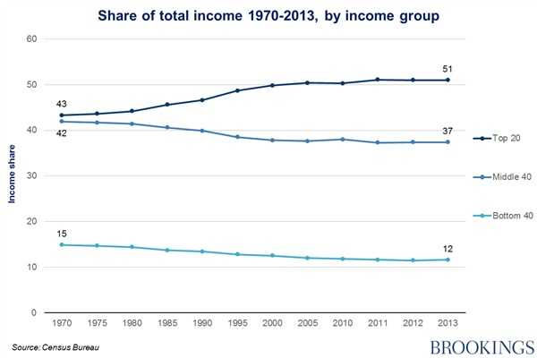 关于不平等的程度有很多争议,但是没人会质疑最近几十年,相比于其他阶层,上层中产阶级收入增长许多,其收入占总体的一半。