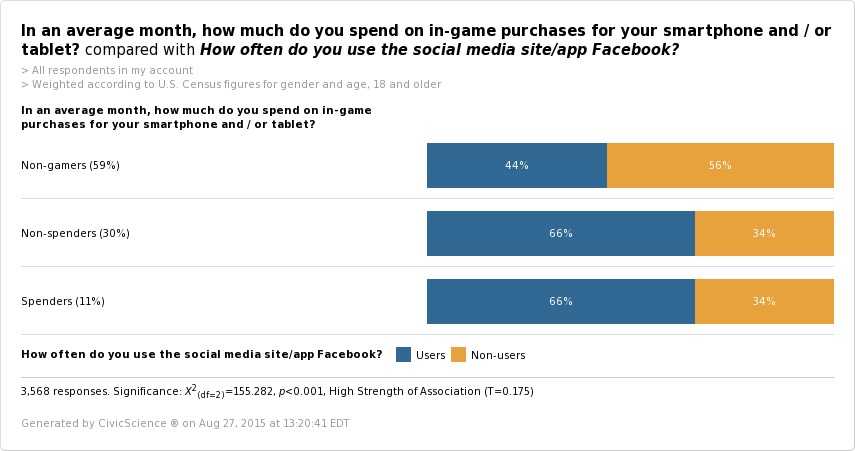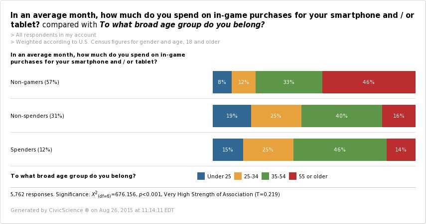 Civicscience调查了5700个美国人,近一半的人表示自己很喜欢玩手机游戏(47%),有12%的人说自己会每个月花钱在小游戏上。