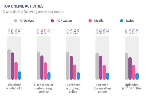 3/4的网民使用手机上网,超过1/3使用平板。显然需要细分那些使用平板、智能电视或游戏主机上网的受众。