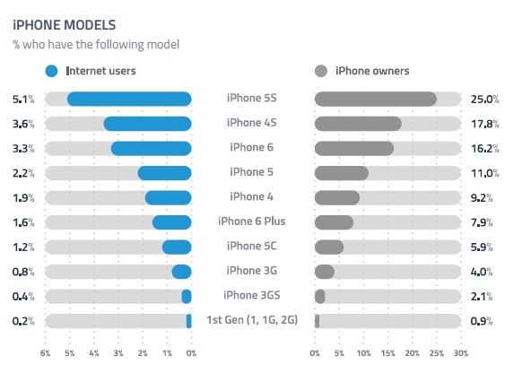 1/4的iPhone用户使用的是5S,但是16%的用户已经拥有iPhone 6,这一型号也是未来购买意图最受欢迎的机型。北美在这方面领先,但是亚太地区增势强劲,显示出亚洲对Apple未来的影响;
