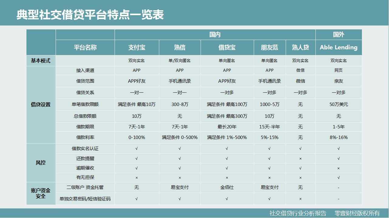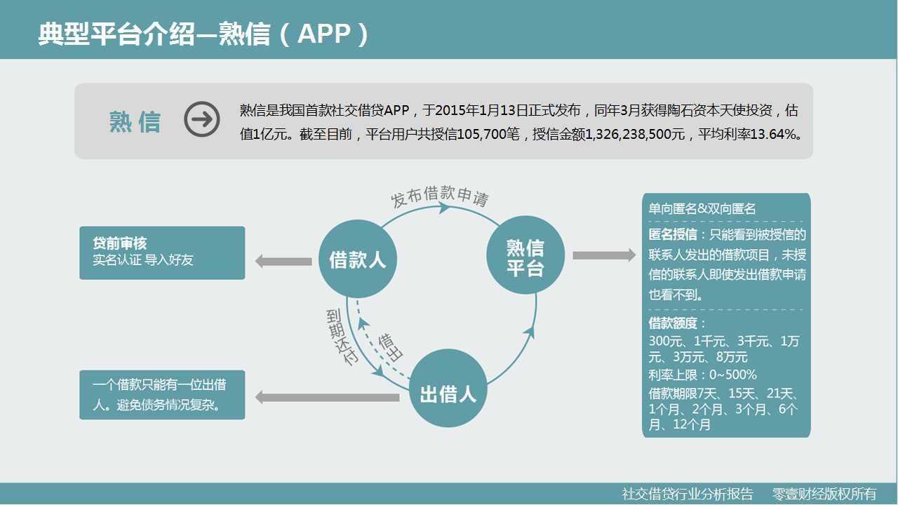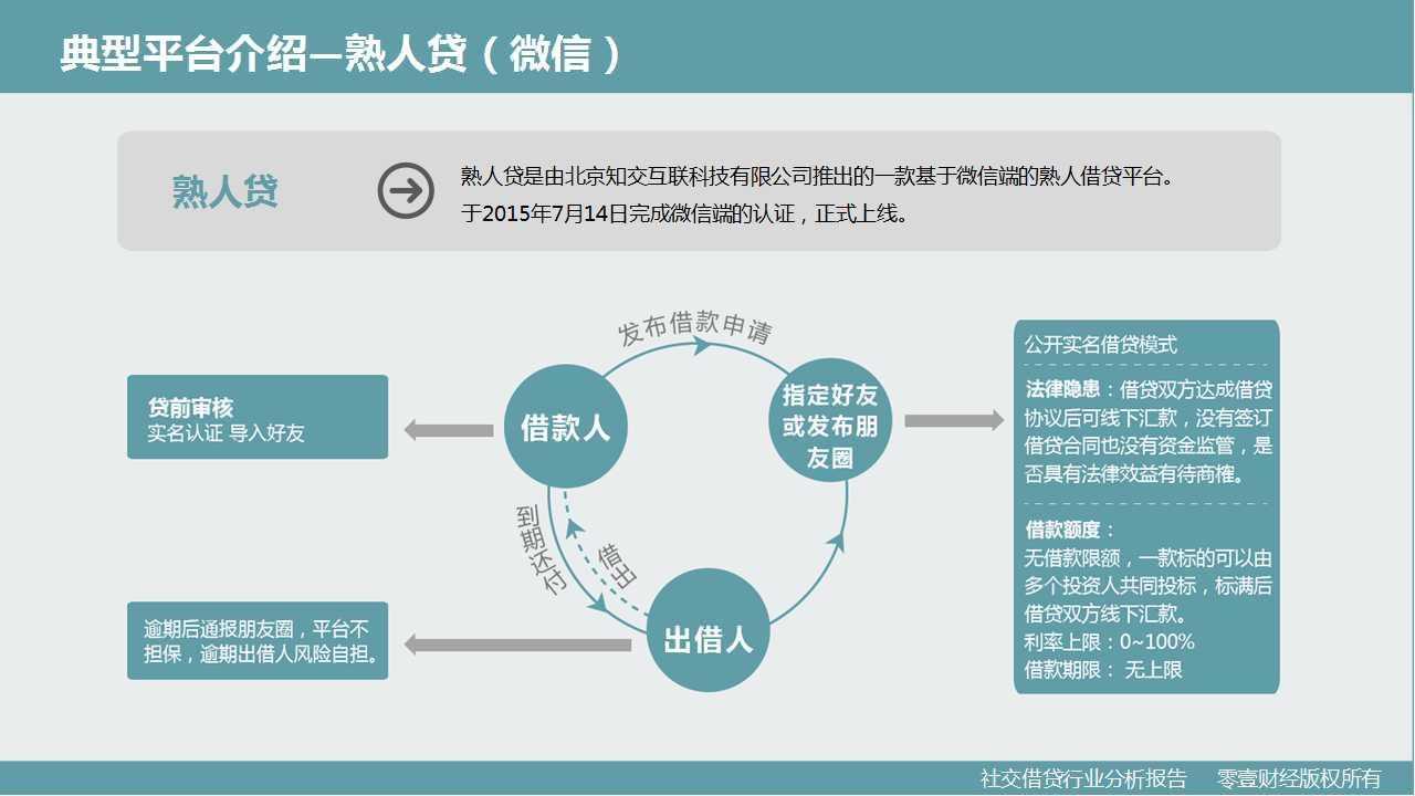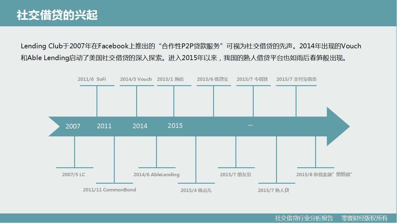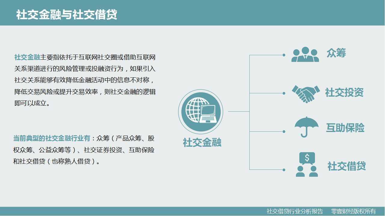 零壹研究院:社交借贷行业分析报告 自8月来,熟人借贷概念引爆,其前世今生及未来出路为人们所挖掘和思索。人们感慨其模式新颖、大胆创新之妙,也担忧这一低频、非刚性需求的模式,究竟能否走得长远。零壹研究院经过近一个月调研、走访,对社交借贷模式进行了深度研究,形成了系列报道与《社交借贷行业分析报告》,以飨业界。 更多阅读:零壹研究院:中国互联网理财人年度分析报告零壹研究院:2015年中国P2P借贷服务行业白皮书零壹研究院:2016年Q1中国互联网众筹季报零壹研究院:2016年3月上海P2P借贷行业交易额约为277亿零壹研究院:2015年中国互联网众筹年度报告零壹研究院:2015年7月全国P2P平台Trustdata:2020年中国“双11”电商购物节行业分析报告零壹研究院:2016年5月P2P行业贷款余额达5674亿元开放银行是银行4.0起点 存在数据泄露等四种风险苏宁金融研究院:2018年Q3互联网金融行业报告苏宁金融研究院:2018年二季度互联网金融行业报告摩根大通黄国滨:科技革命时代投资银行的定位和发展思考苏宁金融研究院:2018年Q1互联网金融行业报告重估金融科技:中美金融科技上市公司对比研究世界金融科技报告:金融科技需与传统金融耦合互补