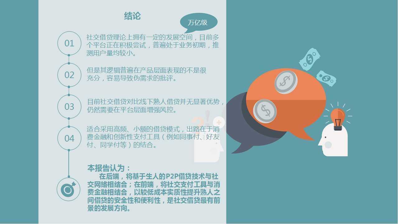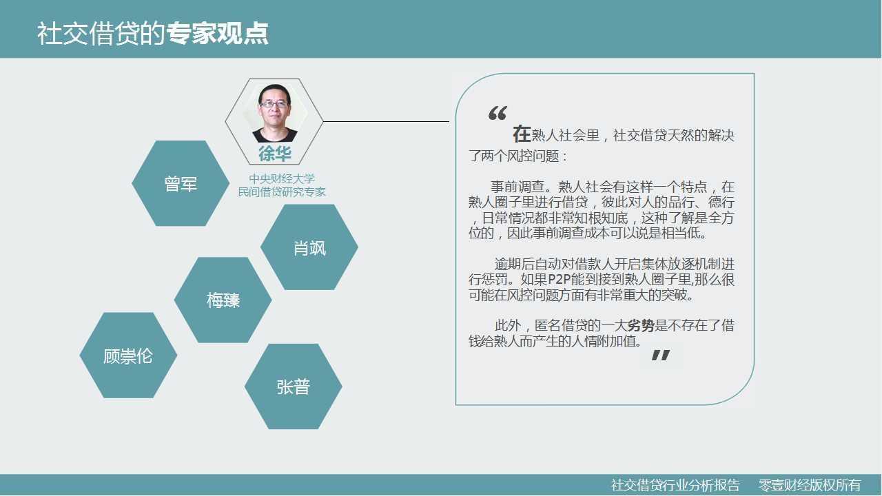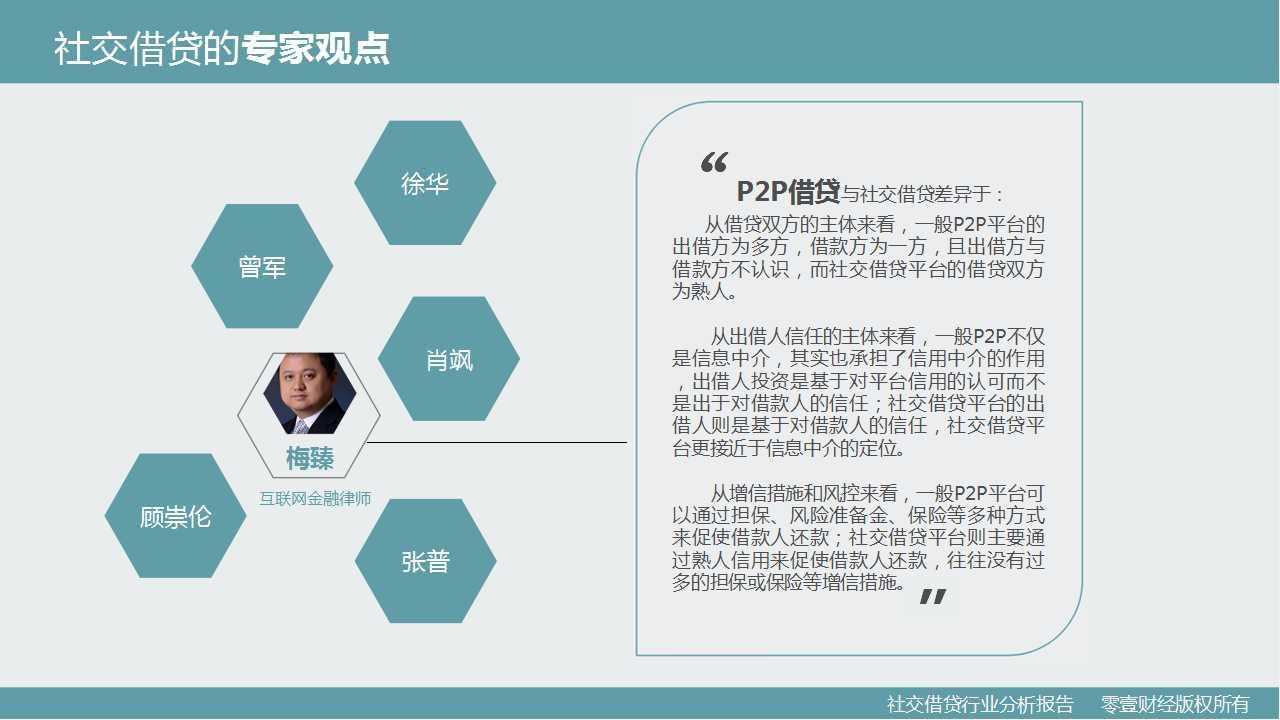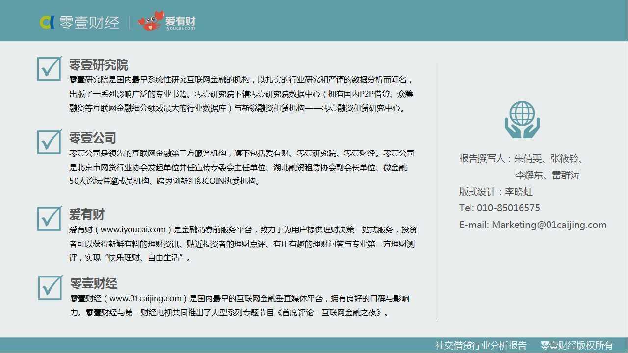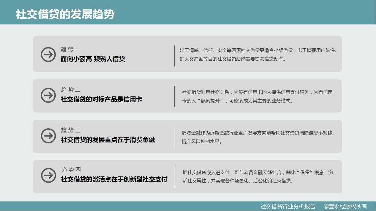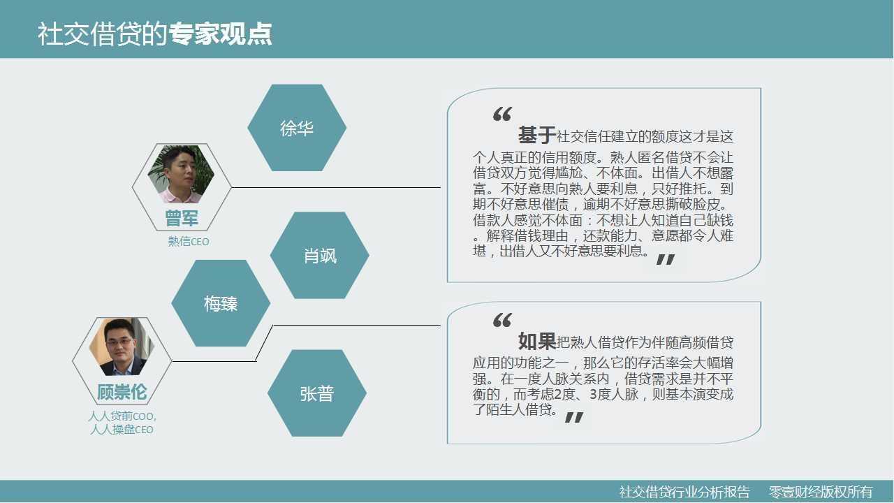 零壹研究院:社交借贷行业分析报告 自8月来,熟人借贷概念引爆,其前世今生及未来出路为人们所挖掘和思索。人们感慨其模式新颖、大胆创新之妙,也担忧这一低频、非刚性需求的模式,究竟能否走得长远。零壹研究院经过近一个月调研、走访,对社交借贷模式进行了深度研究,形成了系列报道与《社交借贷行业分析报告》,以飨业界。 更多阅读:零壹研究院:中国互联网理财人年度分析报告零壹研究院:2015年中国P2P借贷服务行业白皮书零壹研究院:2016年Q1中国互联网众筹季报零壹研究院:2016年3月上海P2P借贷行业交易额约为277亿零壹研究院:2015年中国互联网众筹年度报告零壹研究院:2015年7月全国P2P平台Trustdata:2020年中国“双11”电商购物节行业分析报告零壹研究院:2016年5月P2P行业贷款余额达5674亿元开放银行是银行4.0起点 存在数据泄露等四种风险苏宁金融研究院:2018年Q3互联网金融行业报告苏宁金融研究院:2018年二季度互联网金融行业报告摩根大通黄国滨:科技革命时代投资银行的定位和发展思考苏宁金融研究院:2018年Q1互联网金融行业报告重估金融科技:中美金融科技上市公司对比研究世界金融科技报告:金融科技需与传统金融耦合互补