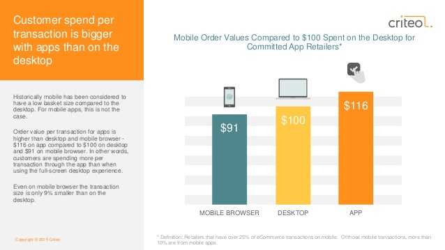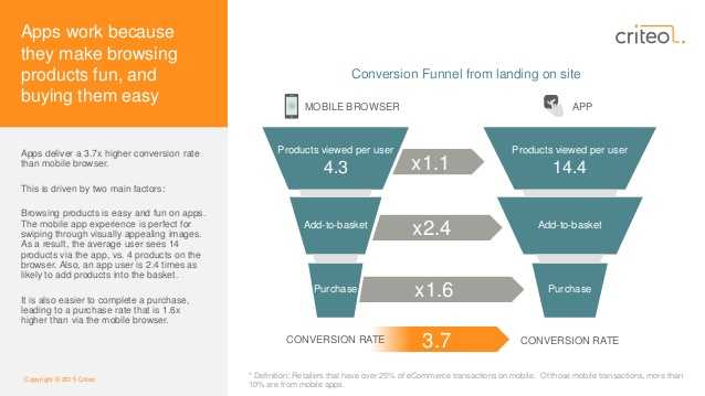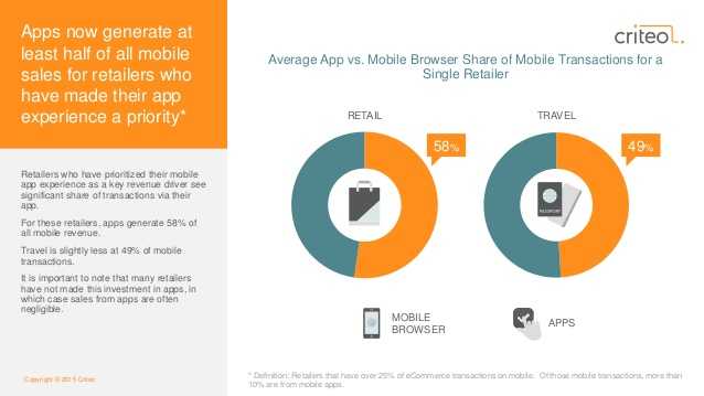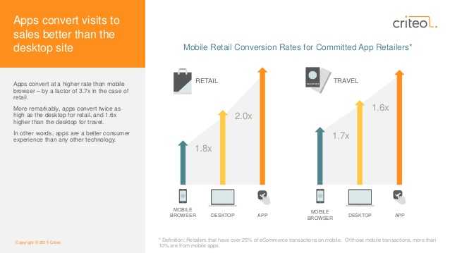 - 应用是性能最卓越的渠道:关注应用的零售商从中获益,应用的转化率远超过PC。