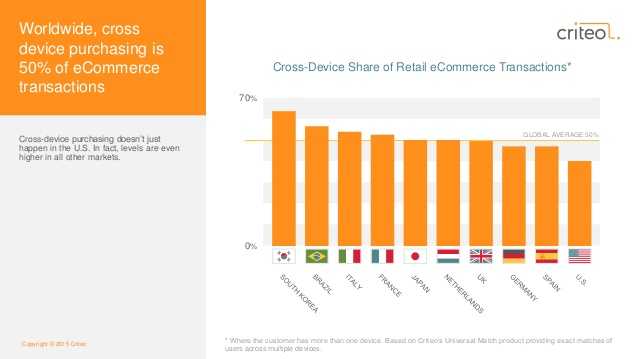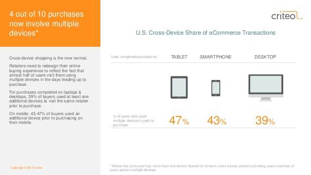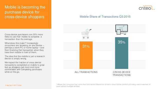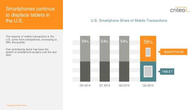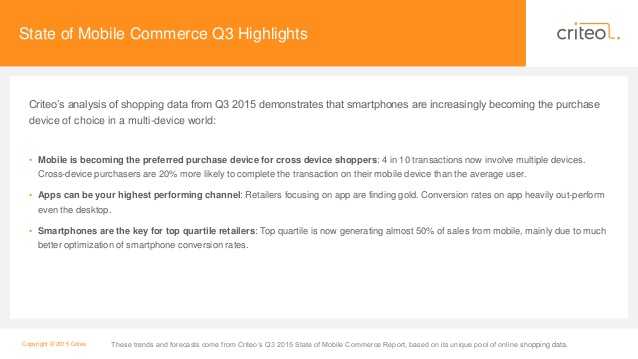 2015年第三季度Criteo对消费数据的分析证实了智能手机在多设备消费领域越来越重要: