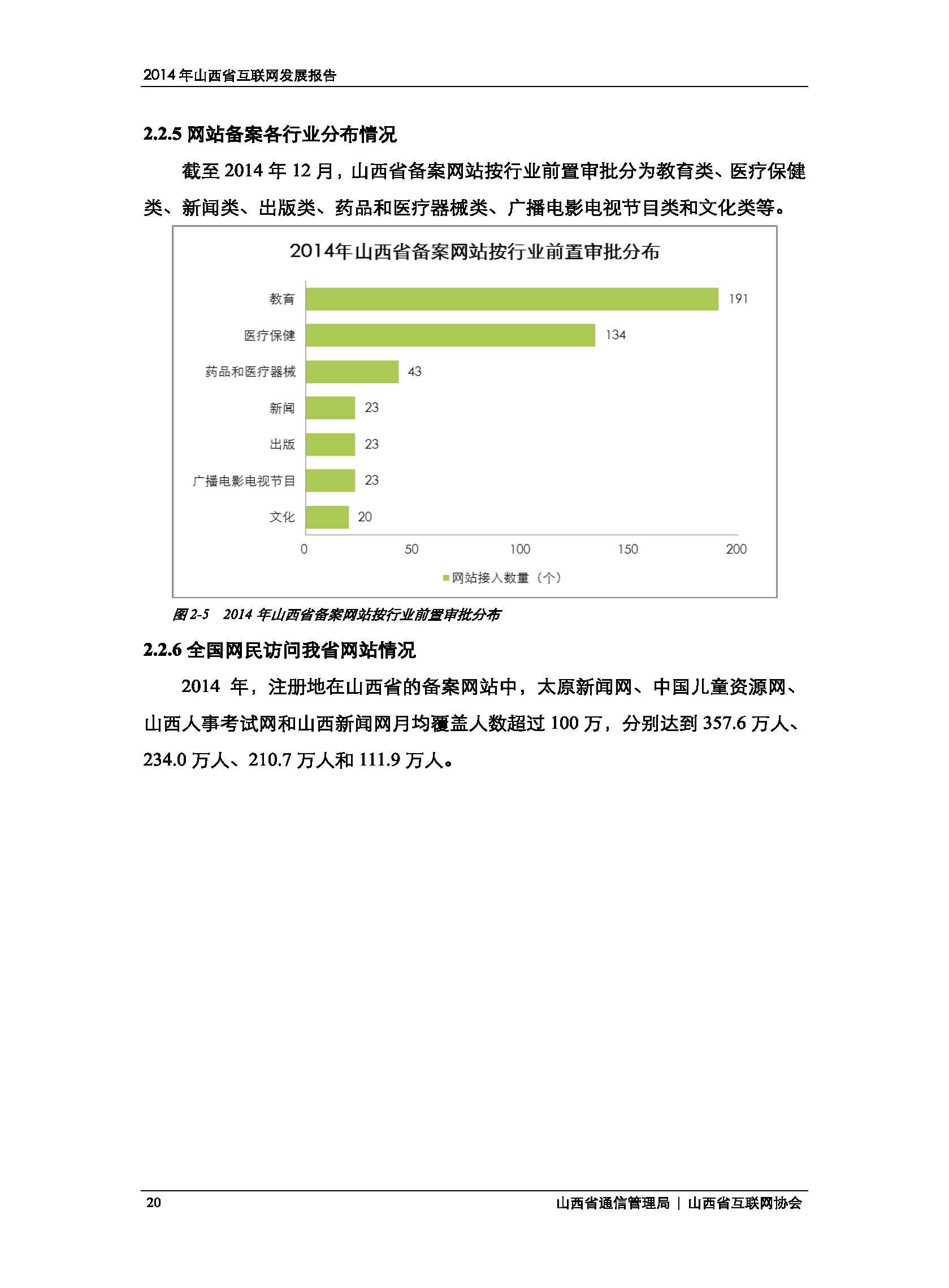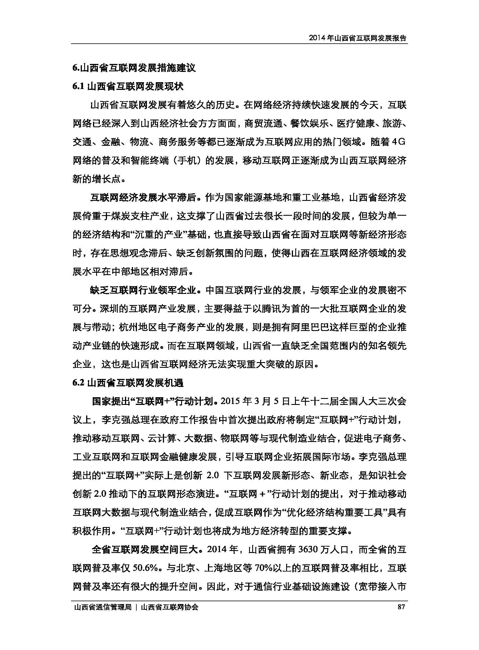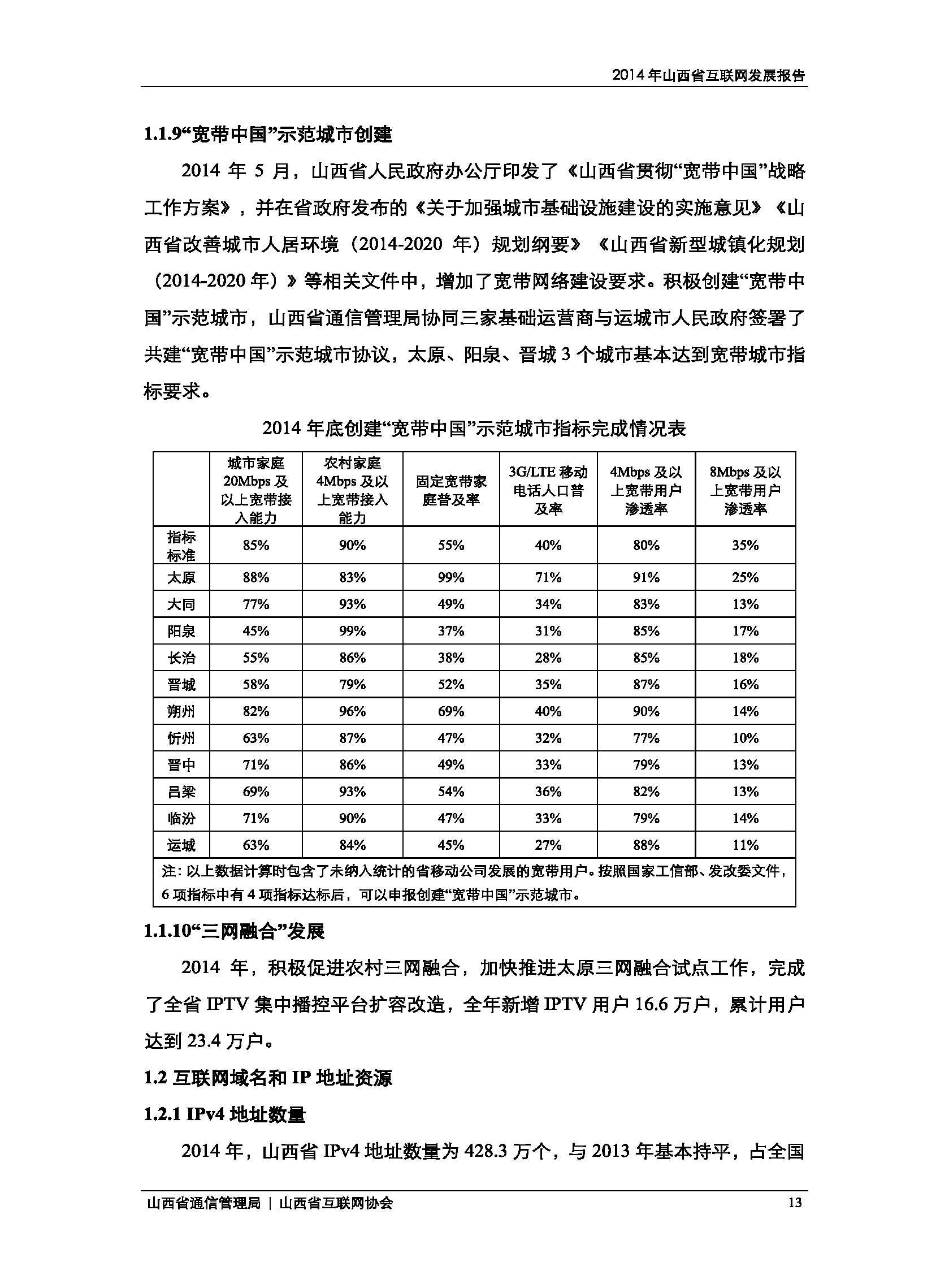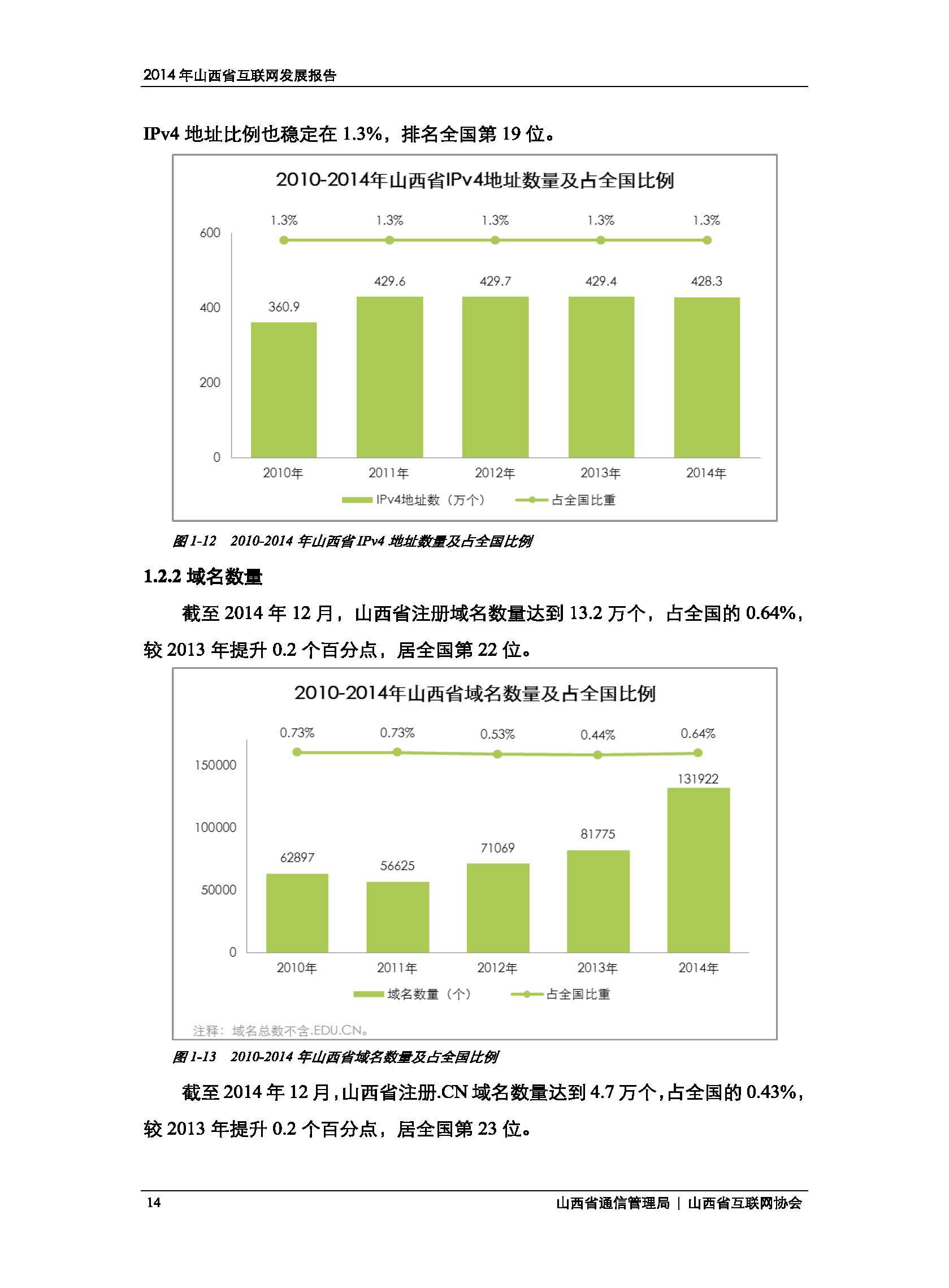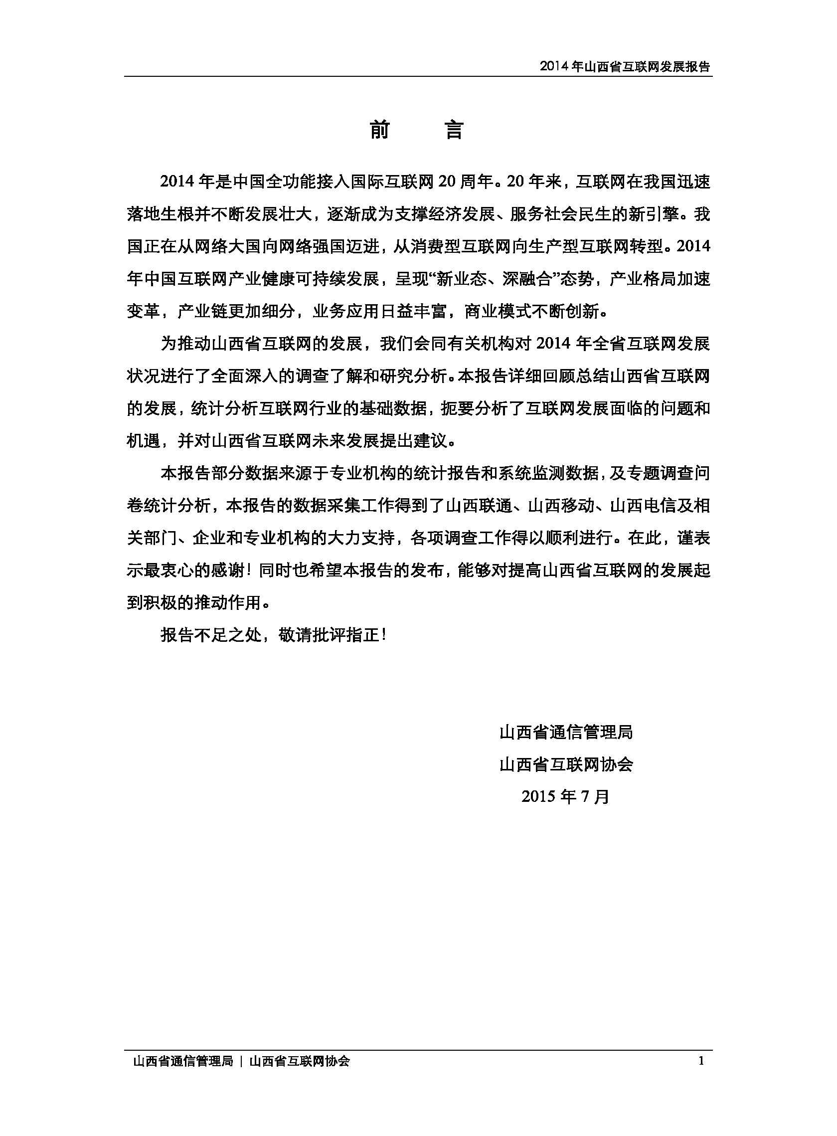 2014年山西省互联网发展报告 更多阅读:山西通信管理局:2015年山西省互联网发展报告2014年度小米应用商店分发数据报告国双数据:2014年中国互联网发展报告山西省通信管理局:2014年6月山西省互联网宽带接入用户数达550.7万户山西省通信管理局:2014年5月山西省互联网宽带接入用户数达546.3万户CNNIC:2014年乐山市互联网发展研究报告CNNIC:2019年度天津市互联网发展状况统计报告河南省通信管理局:2013年河南互联网发展状况报告CNNIC:2013年第32次中国互联网发展状况统计报告:网民属性数据CNNIC:2014年海南省互联网发展状况报告CNNIC:2011年四川省互联网发展状况统计报告CNNIC:2015年深圳市互联网发展状况研究CNNIC:2014年黑龙江省互联网发展状况报告CNNIC:2011-2012年深圳市互联网发展状况研究报告2025年9月我国IPv6活跃用户8.65亿,增长294倍