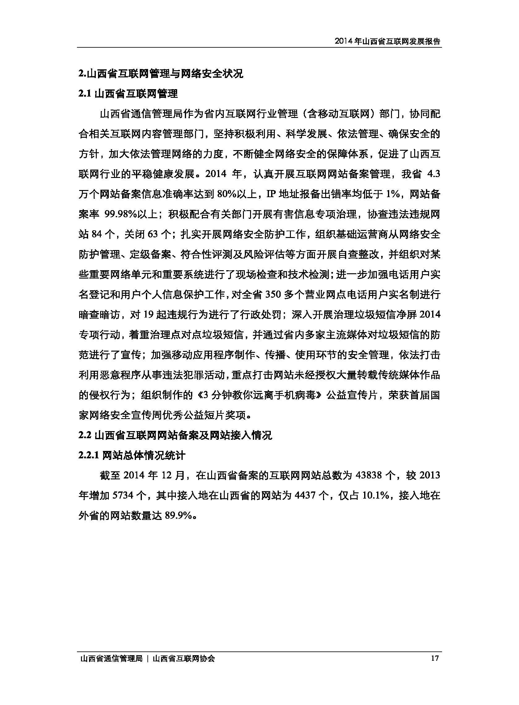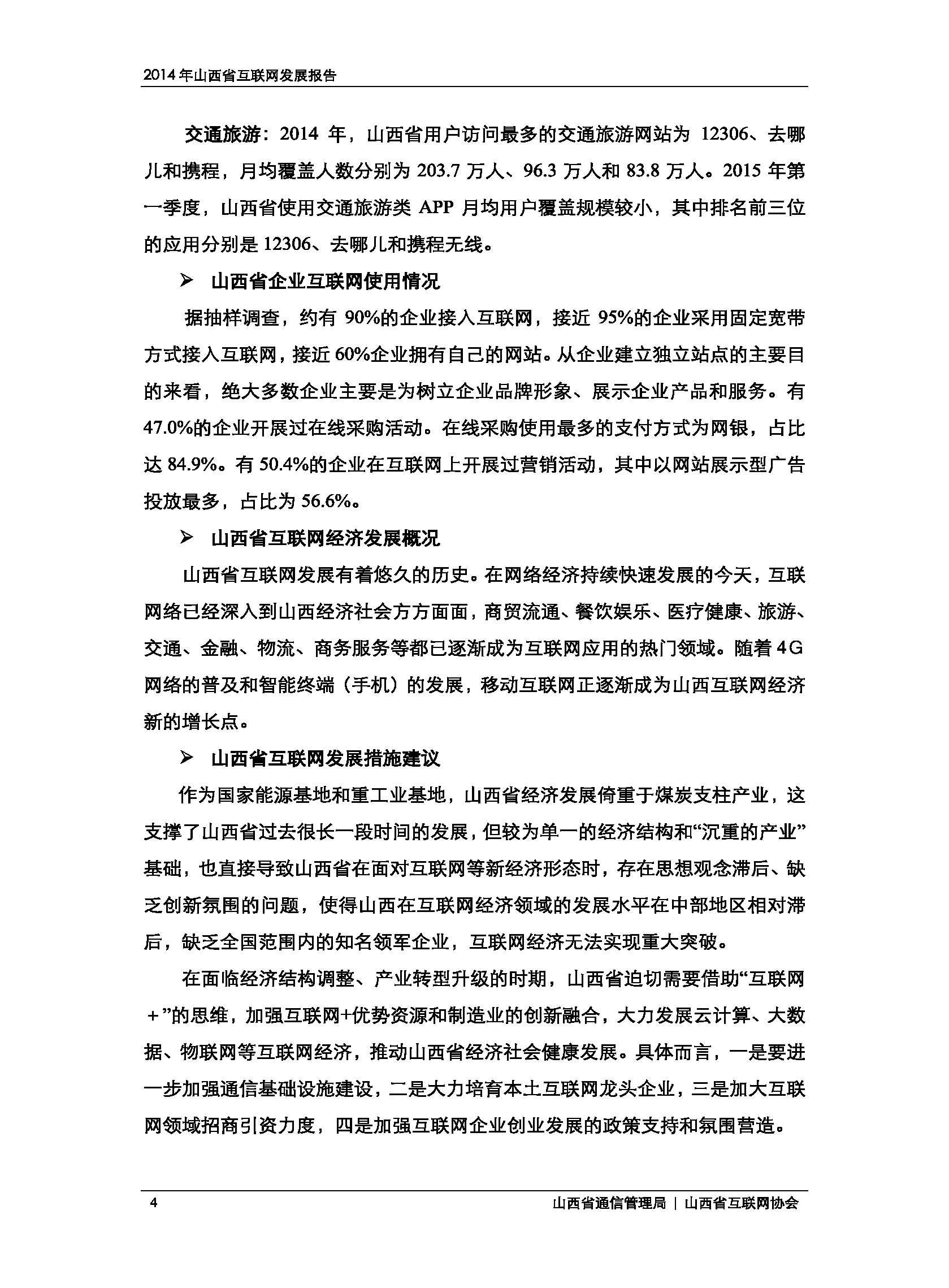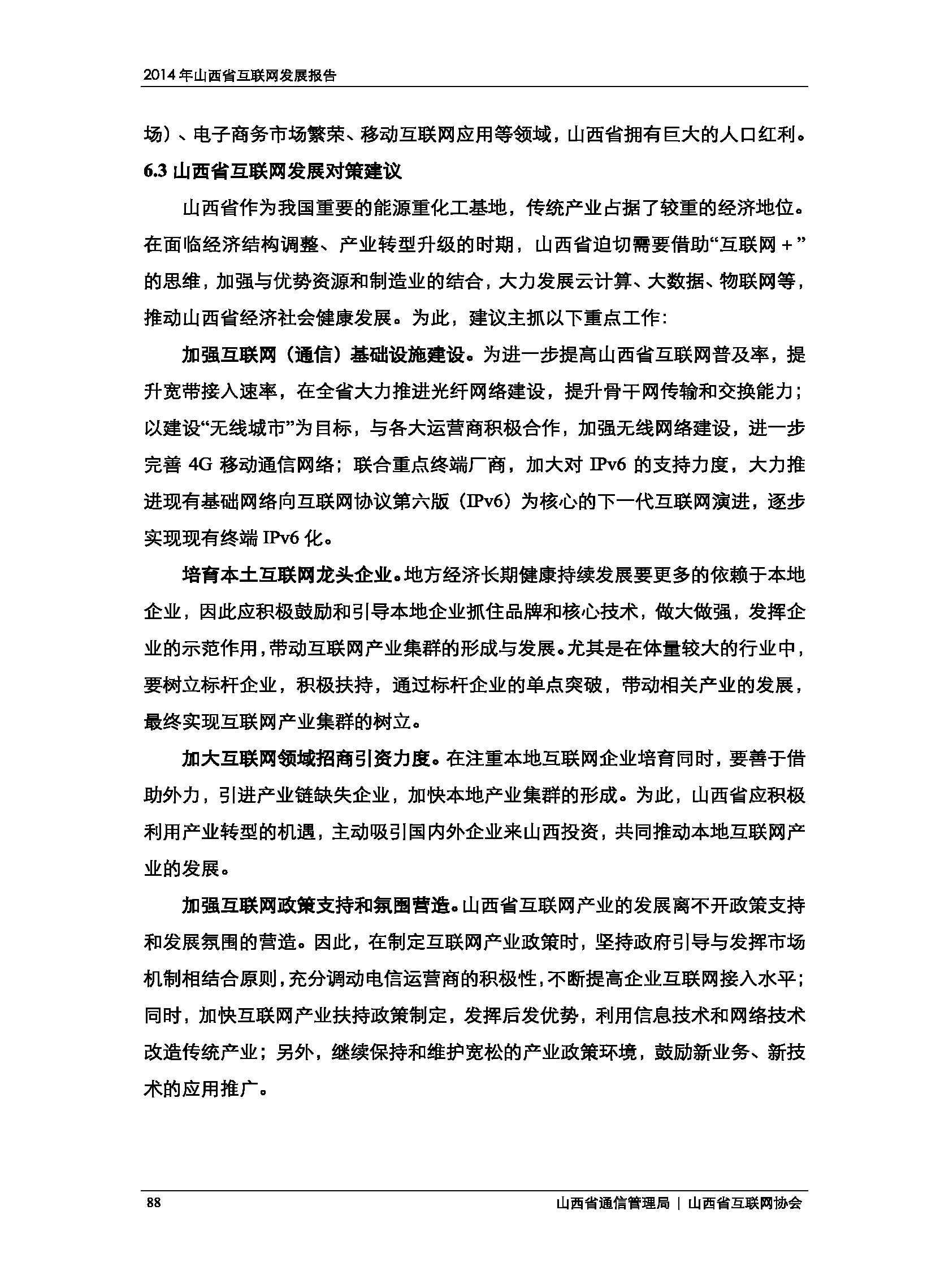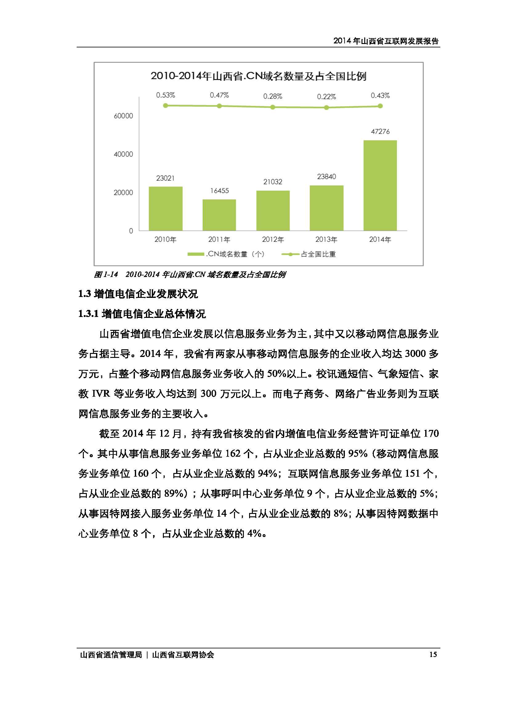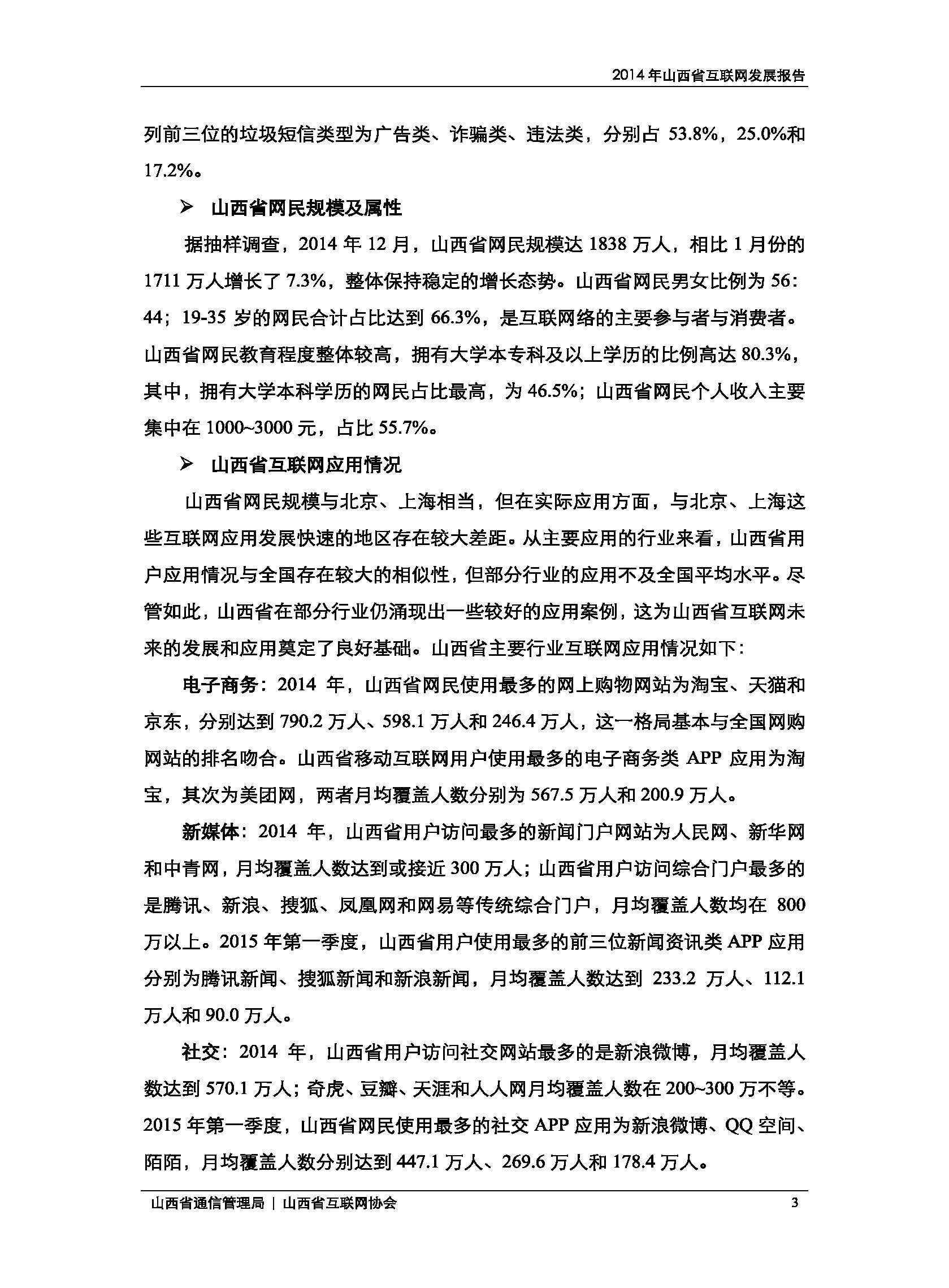 2014年山西省互联网发展报告 更多阅读:山西通信管理局:2015年山西省互联网发展报告2014年度小米应用商店分发数据报告国双数据:2014年中国互联网发展报告山西省通信管理局:2014年6月山西省互联网宽带接入用户数达550.7万户山西省通信管理局:2014年5月山西省互联网宽带接入用户数达546.3万户CNNIC:2014年乐山市互联网发展研究报告CNNIC:2019年度天津市互联网发展状况统计报告河南省通信管理局:2013年河南互联网发展状况报告CNNIC:2013年第32次中国互联网发展状况统计报告:网民属性数据CNNIC:2014年海南省互联网发展状况报告CNNIC:2011年四川省互联网发展状况统计报告CNNIC:2015年深圳市互联网发展状况研究CNNIC:2014年黑龙江省互联网发展状况报告CNNIC:2011-2012年深圳市互联网发展状况研究报告2025年9月我国IPv6活跃用户8.65亿,增长294倍