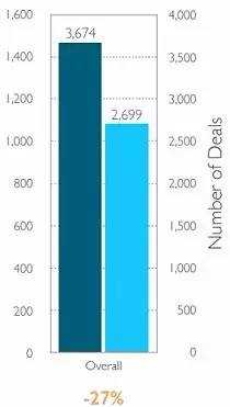 1)今年三季度,美国创业公司融资市场“低成交笔数”趋势仍在继续,同比下滑 27%;