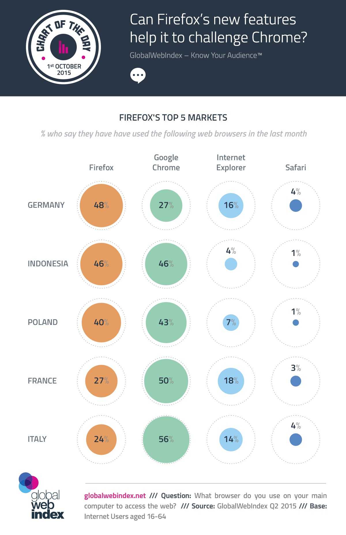 而且,火狐的新功能很可能在许多国家引起共鸣。例如,2/3的印度尼西亚火狐用户在PC上使用过即时消息服务,这说明其内置新工具将帮助开拓更大的市场。