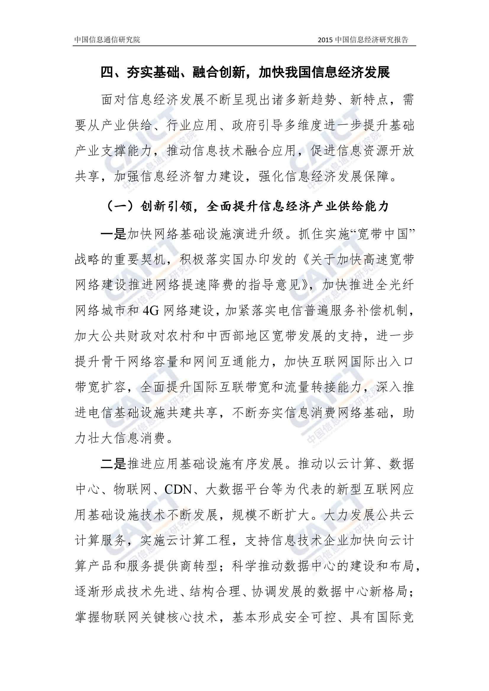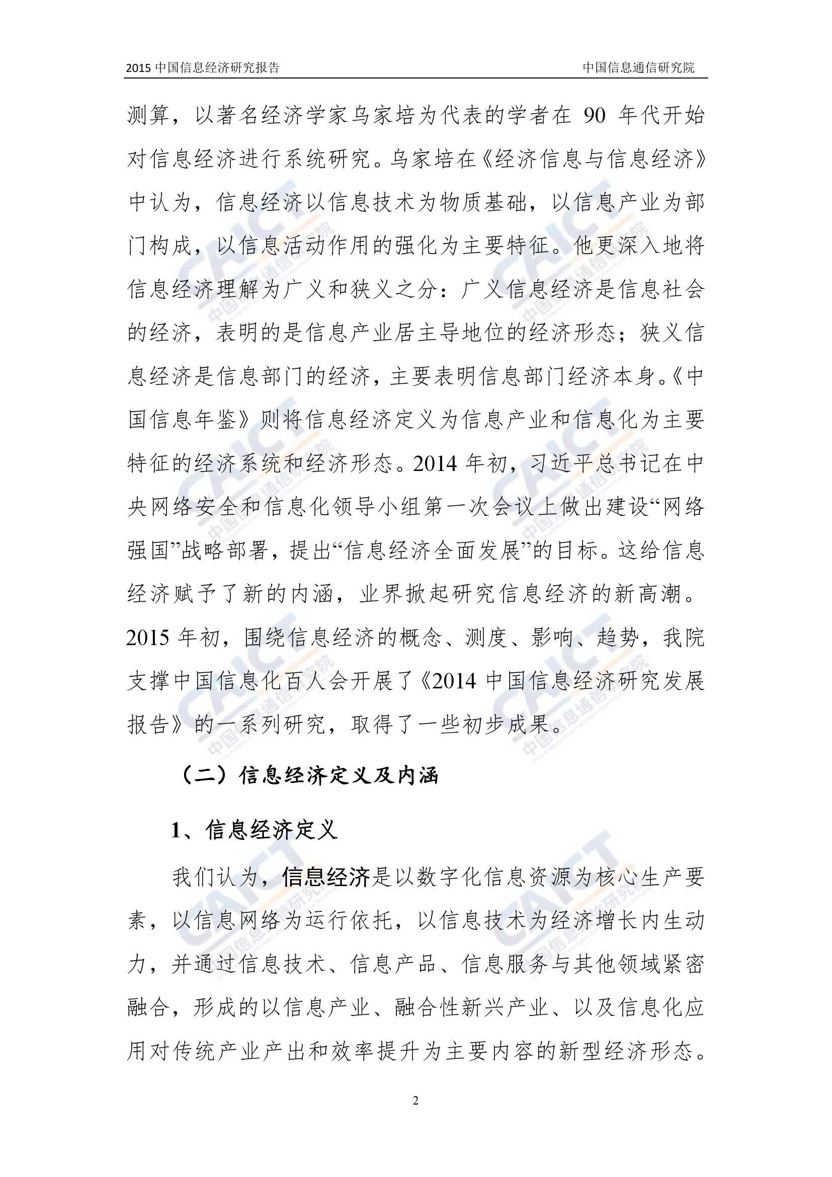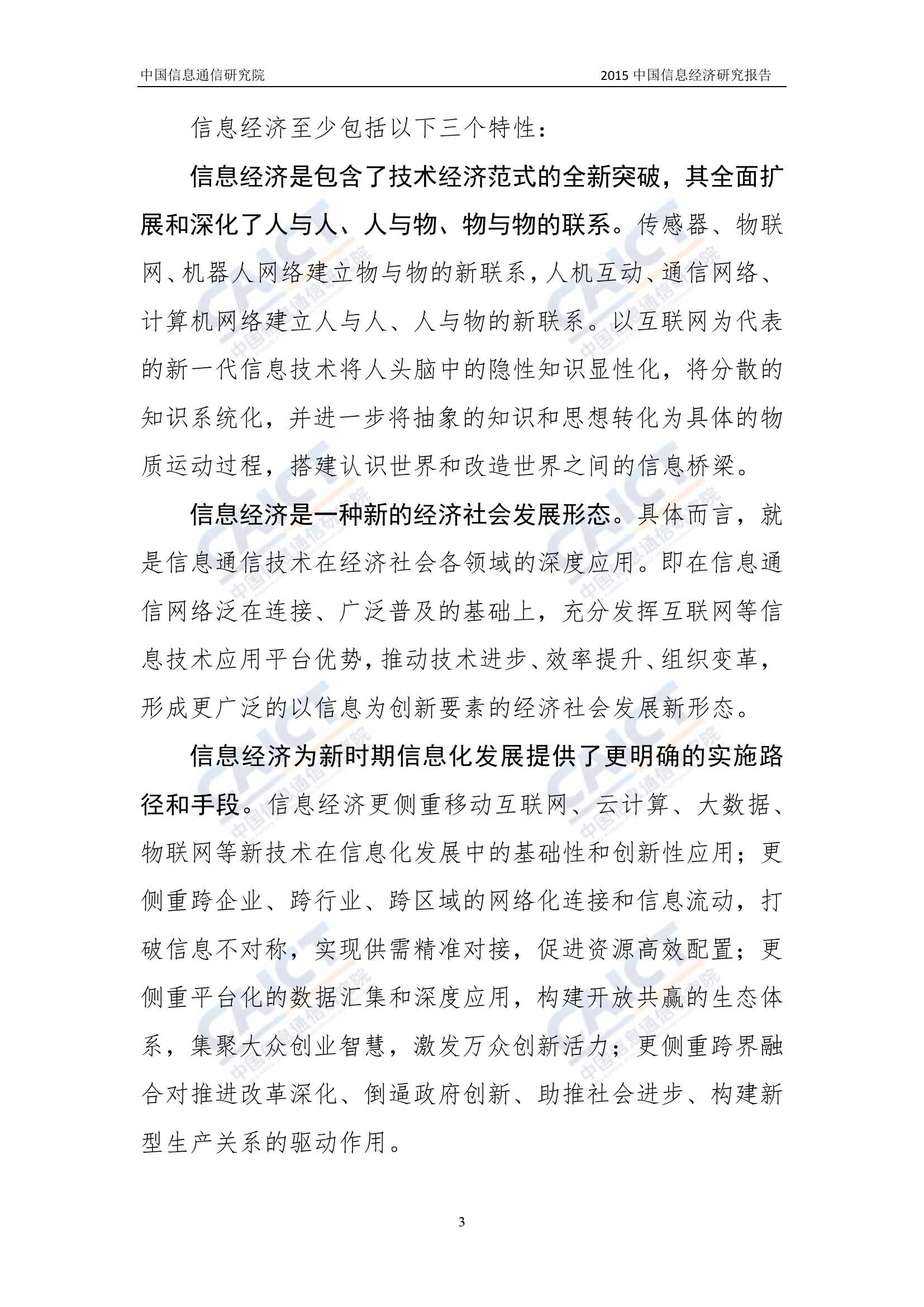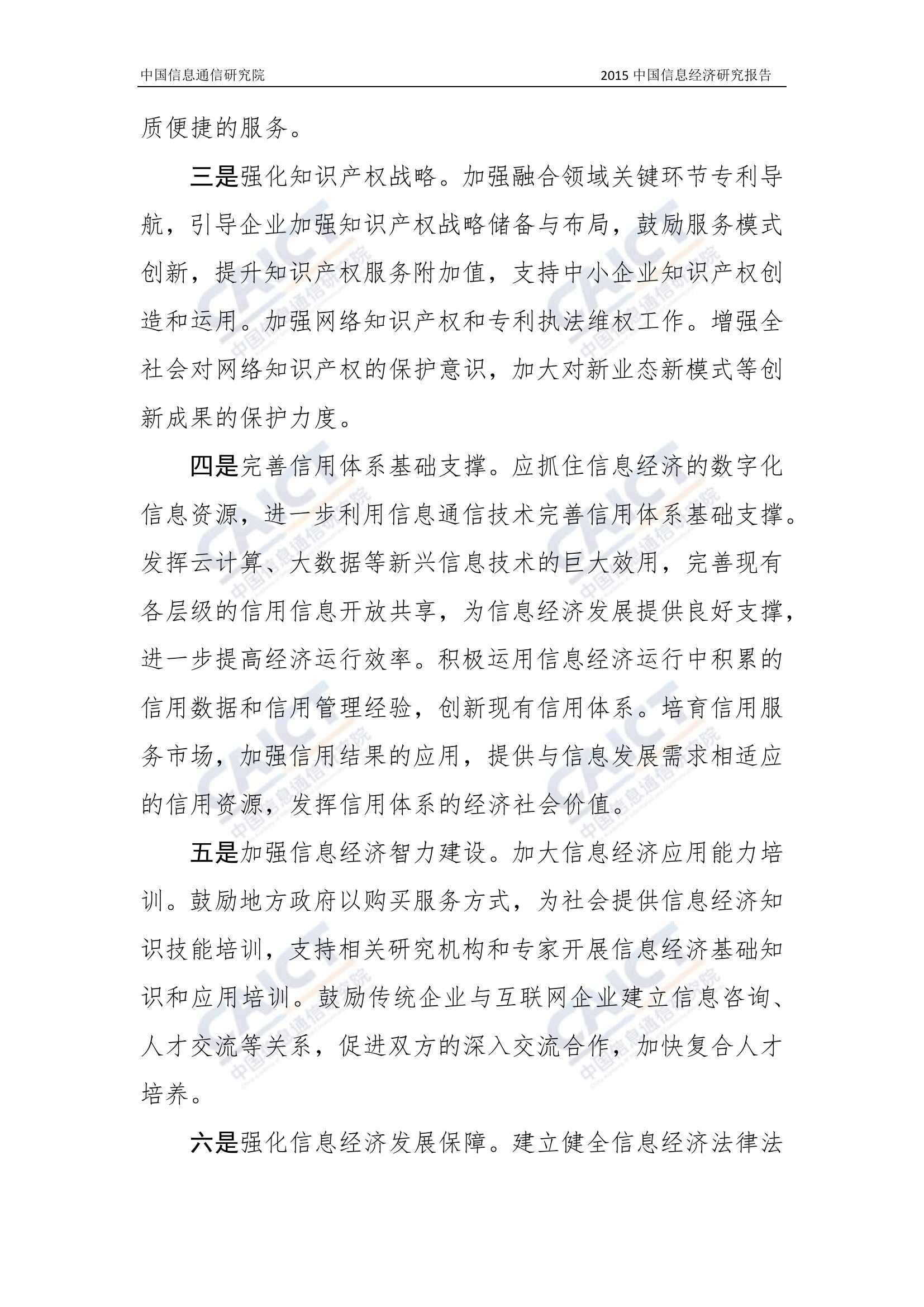 中国信息通信研究院:2015年中国信息经济研究报告 更多阅读:阿里研究院:2015年网商发展研究报告微盟:2015年微信营销研究报告2015年中国专有云发展调查报告2015年中国公共云服务发展调查CBME:2015年中国孕婴童产业调查报告武书连:2015年中国大学排行榜AVC:2015年中国家电市场环境解析CNNIC:2015年第37次中国互联网络发展状况统计报告–个人互联网应用发展状况(九)Topdigital&妈妈帮:2015年中国母婴互联网营销新思维与新趋势Nielsen:2015年中国突破性创新报告CAICT:2015年中国大数据发展调查阿里妈妈:2015年Q2中国汽车消费车主洞察Deloitte:2015年中国移动消费者行为CNNIC:2015年第37次中国互联网络发展状况统计报告–企业“+互联网”广泛应用(五)CNNIC:2015年第37次中国互联网络发展状况统计报告–网民规模与结构(七)