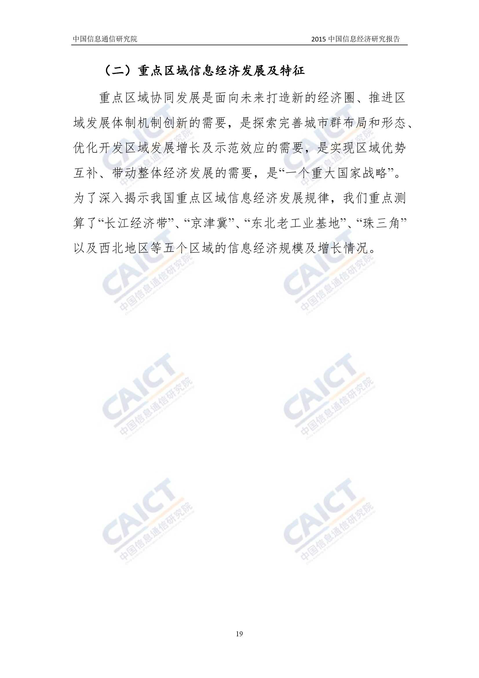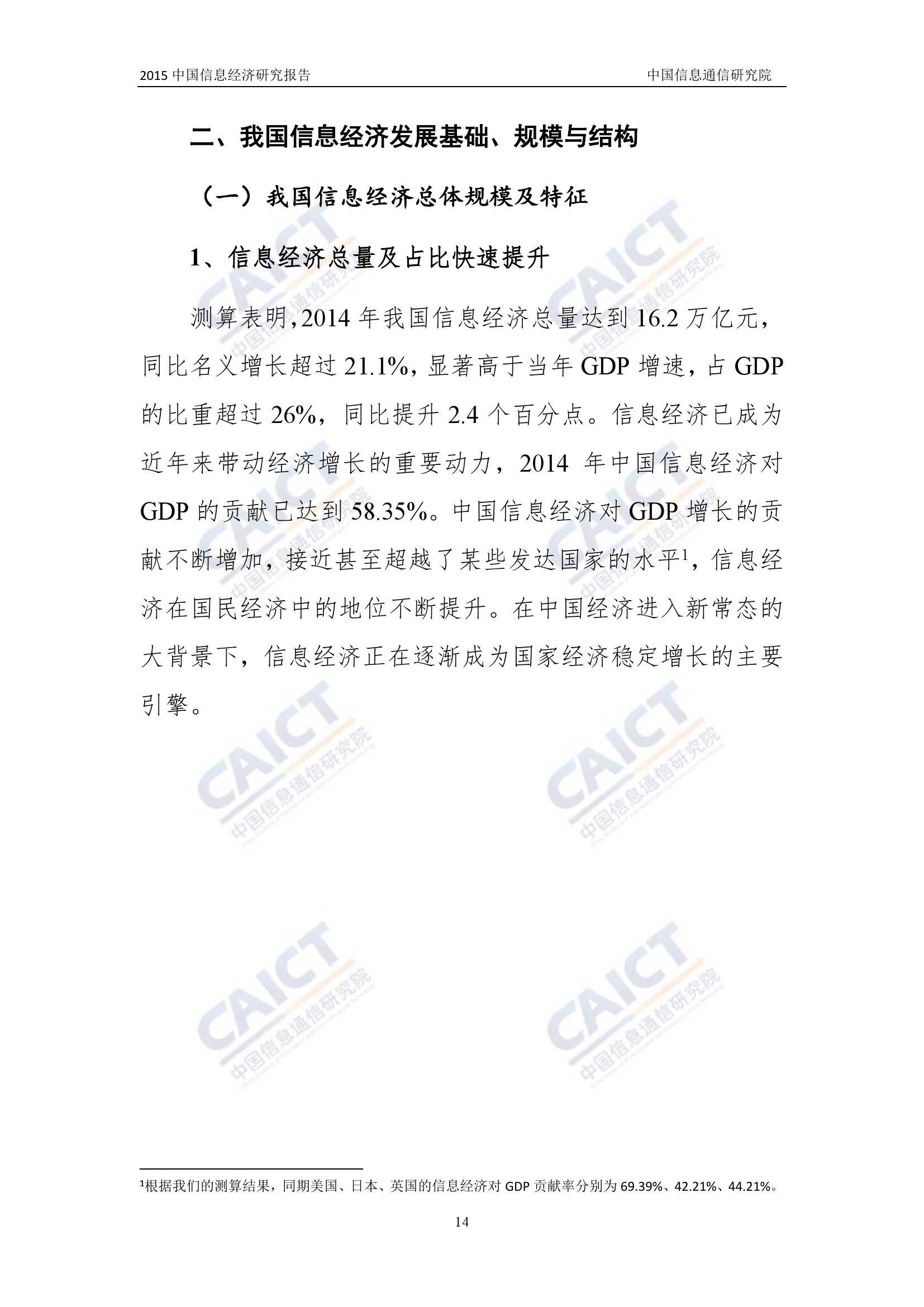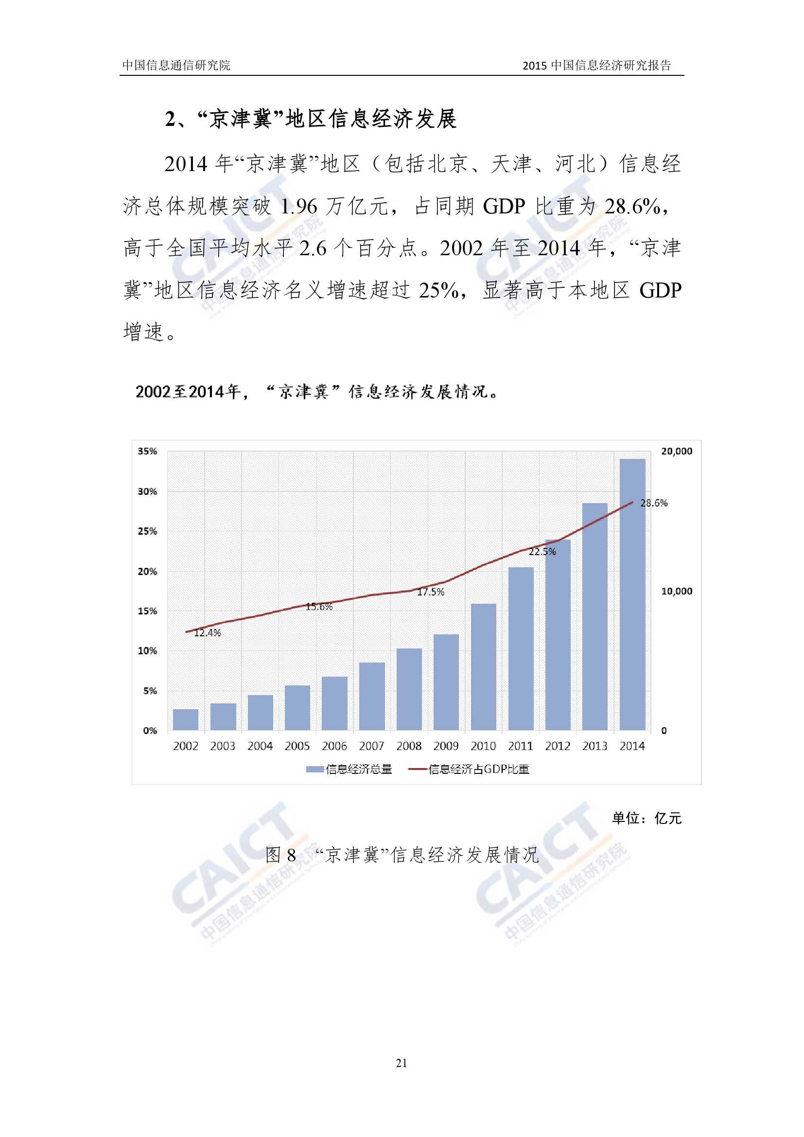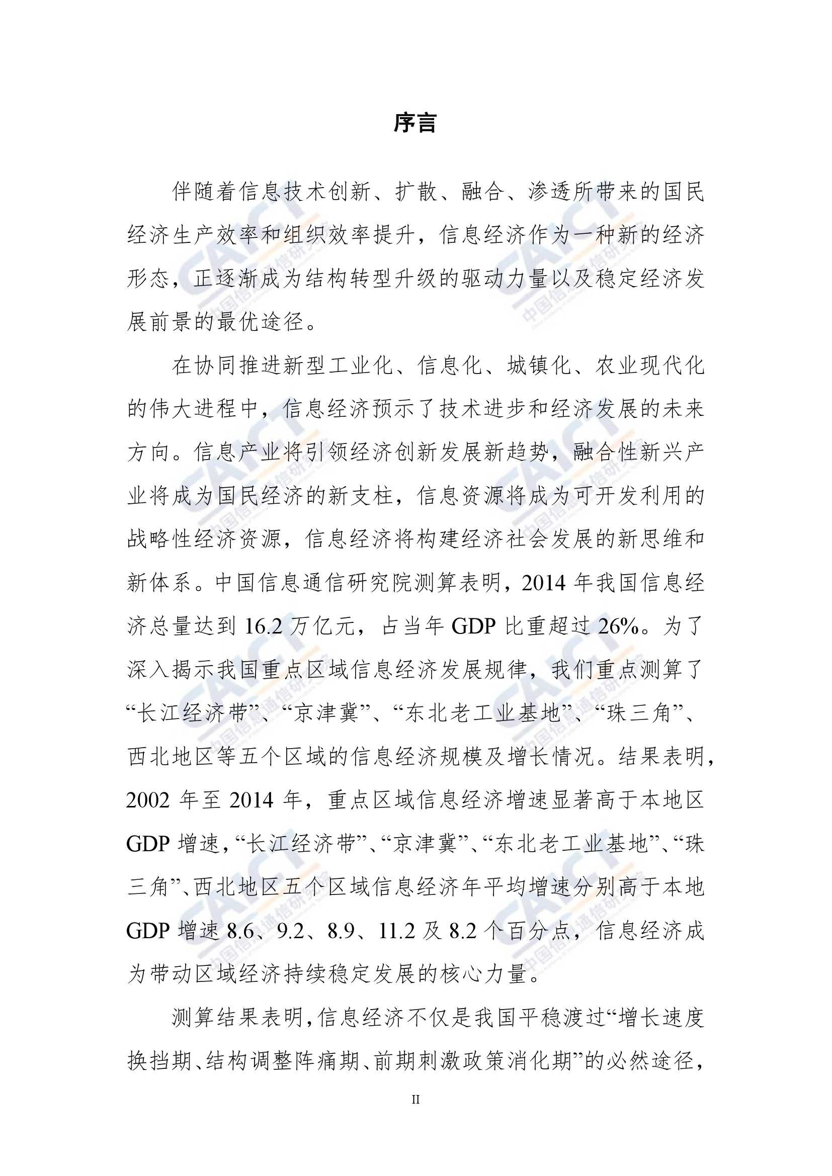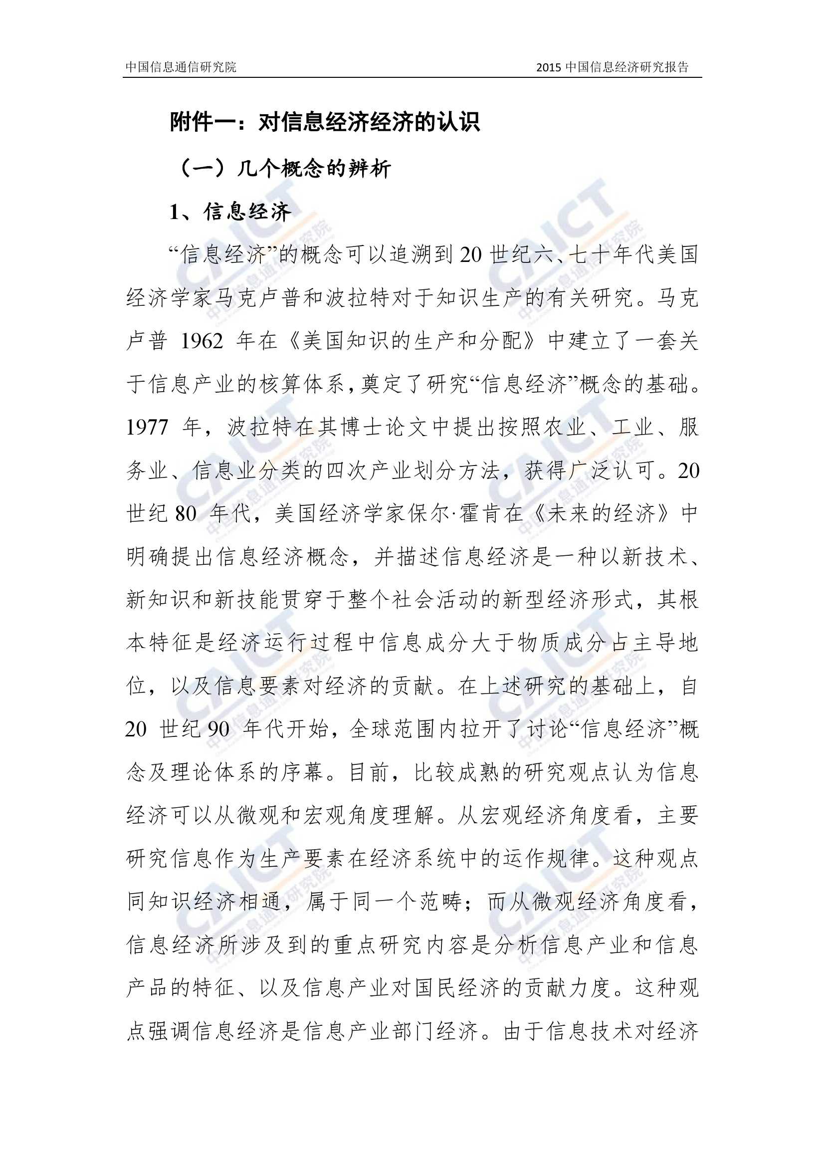 中国信息通信研究院:2015年中国信息经济研究报告 更多阅读:阿里研究院:2015年网商发展研究报告微盟:2015年微信营销研究报告2015年中国专有云发展调查报告2015年中国公共云服务发展调查CBME:2015年中国孕婴童产业调查报告武书连:2015年中国大学排行榜AVC:2015年中国家电市场环境解析CNNIC:2015年第37次中国互联网络发展状况统计报告–个人互联网应用发展状况(九)Topdigital&妈妈帮:2015年中国母婴互联网营销新思维与新趋势Nielsen:2015年中国突破性创新报告CAICT:2015年中国大数据发展调查阿里妈妈:2015年Q2中国汽车消费车主洞察Deloitte:2015年中国移动消费者行为CNNIC:2015年第37次中国互联网络发展状况统计报告–企业“+互联网”广泛应用(五)CNNIC:2015年第37次中国互联网络发展状况统计报告–网民规模与结构(七)