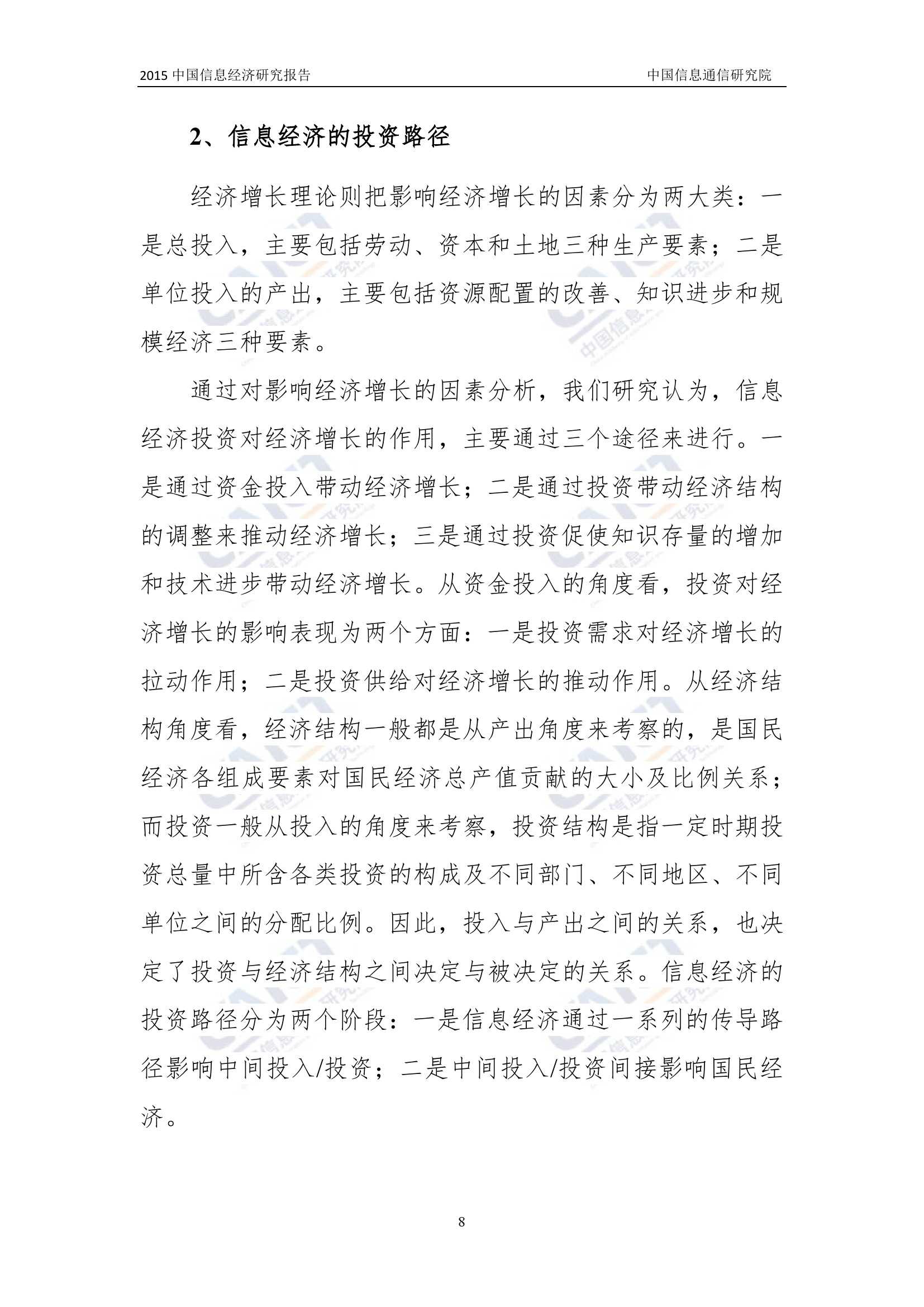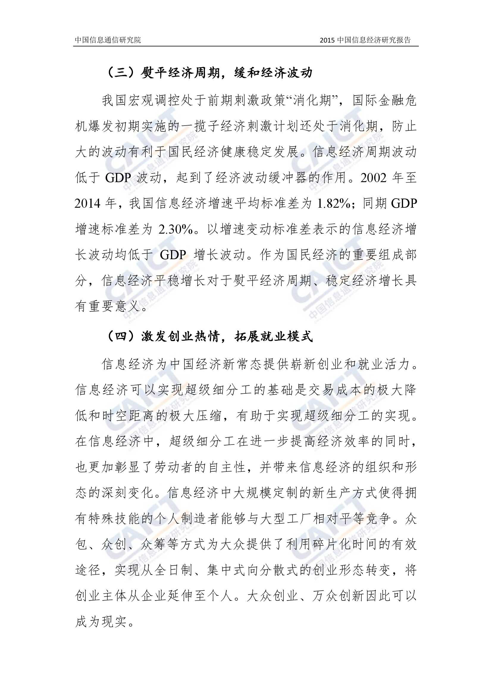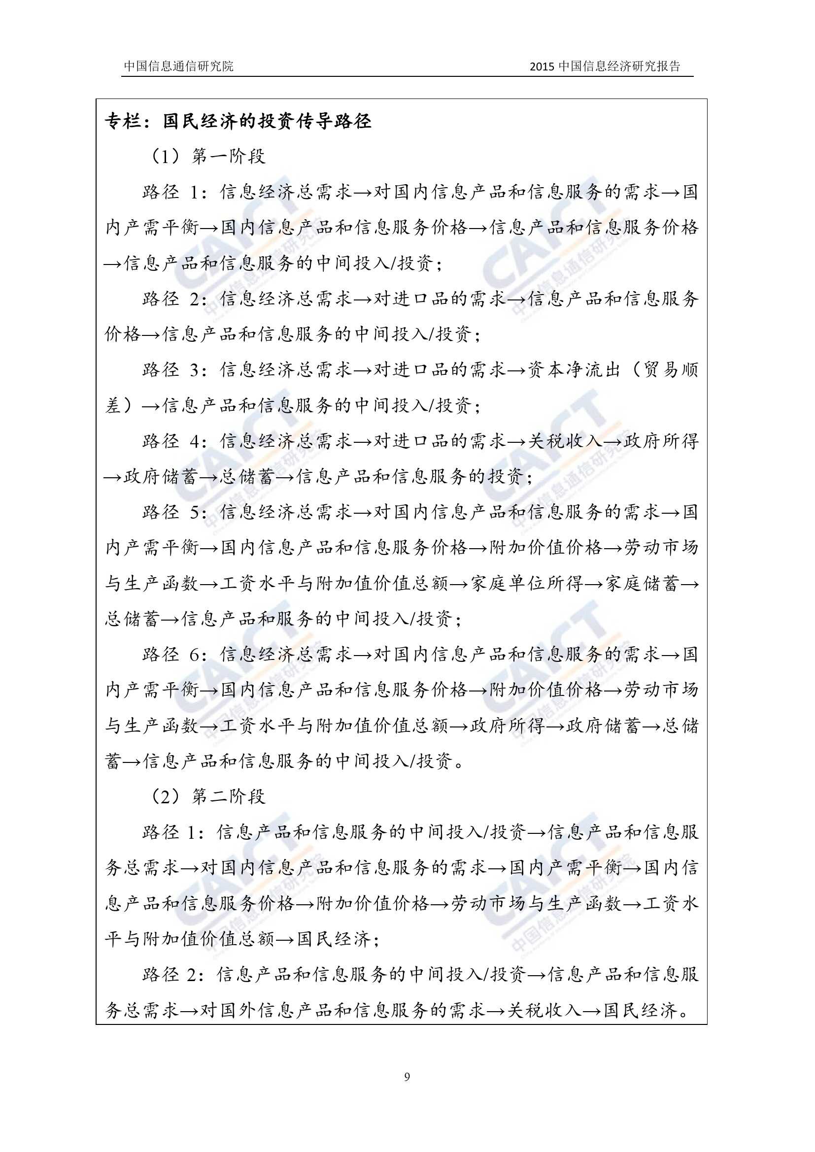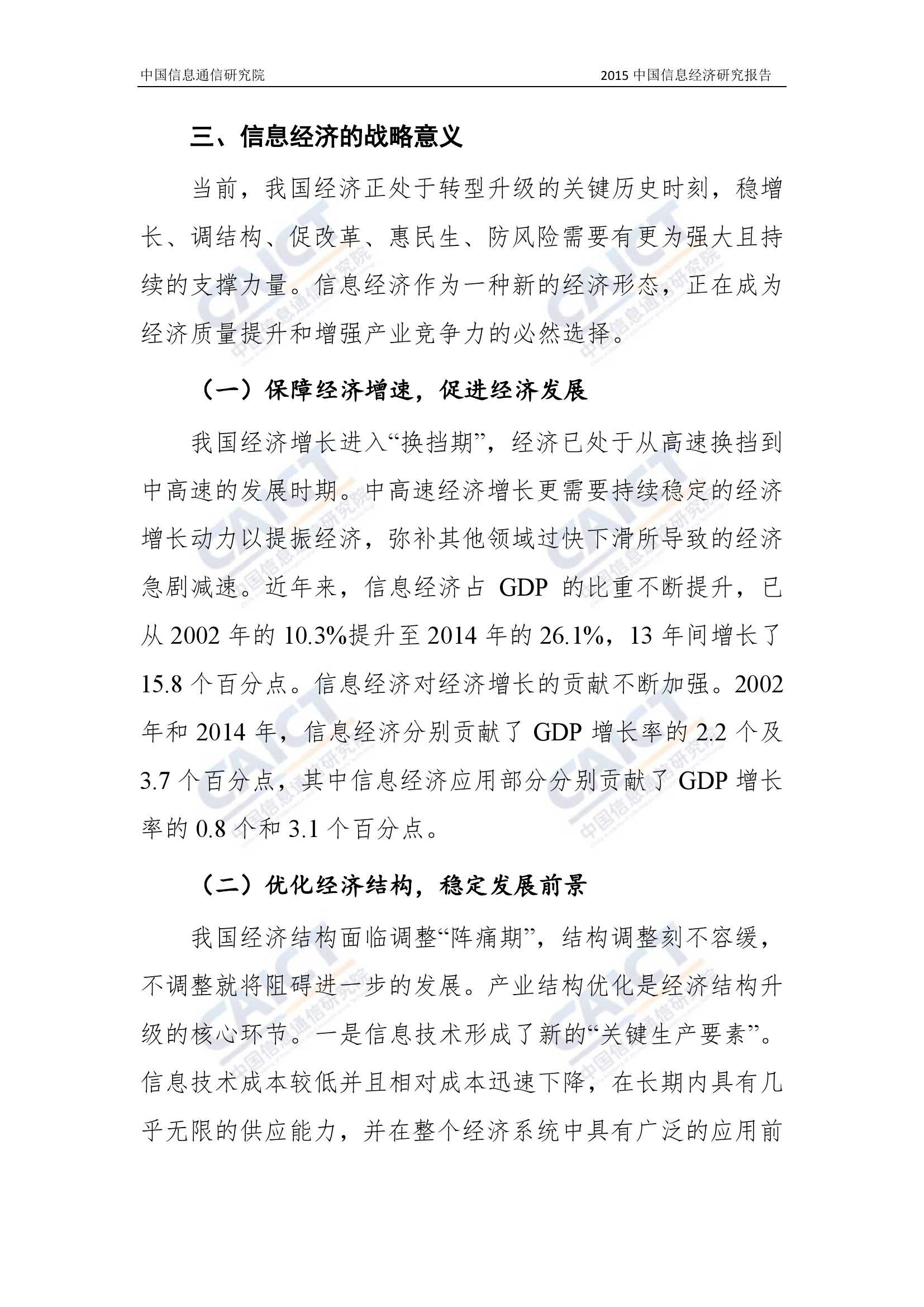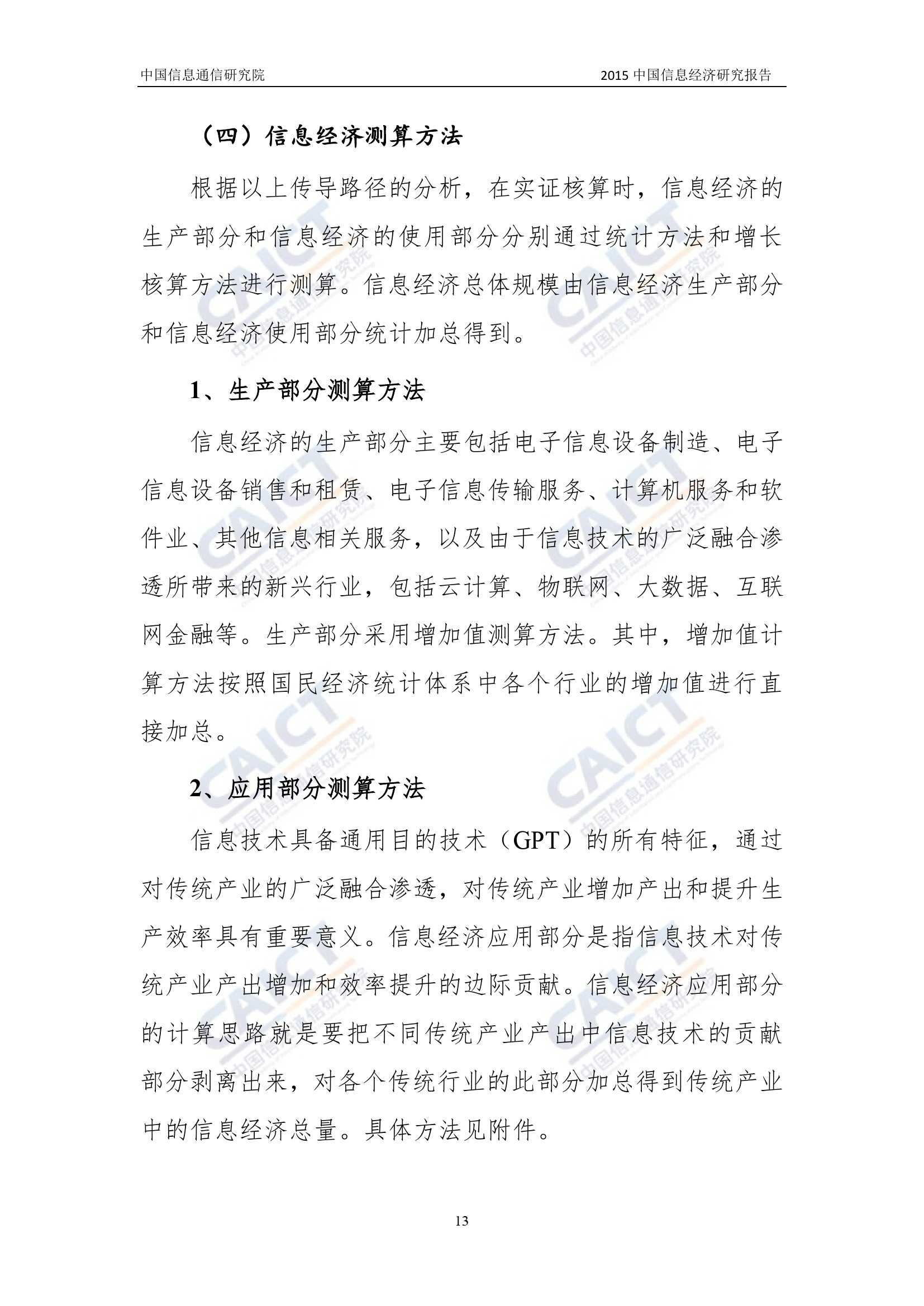 中国信息通信研究院:2015年中国信息经济研究报告 更多阅读:阿里研究院:2015年网商发展研究报告微盟:2015年微信营销研究报告2015年中国专有云发展调查报告2015年中国公共云服务发展调查CBME:2015年中国孕婴童产业调查报告武书连:2015年中国大学排行榜AVC:2015年中国家电市场环境解析CNNIC:2015年第37次中国互联网络发展状况统计报告–个人互联网应用发展状况(九)Topdigital&妈妈帮:2015年中国母婴互联网营销新思维与新趋势Nielsen:2015年中国突破性创新报告CAICT:2015年中国大数据发展调查阿里妈妈:2015年Q2中国汽车消费车主洞察Deloitte:2015年中国移动消费者行为CNNIC:2015年第37次中国互联网络发展状况统计报告–企业“+互联网”广泛应用(五)CNNIC:2015年第37次中国互联网络发展状况统计报告–网民规模与结构(七)