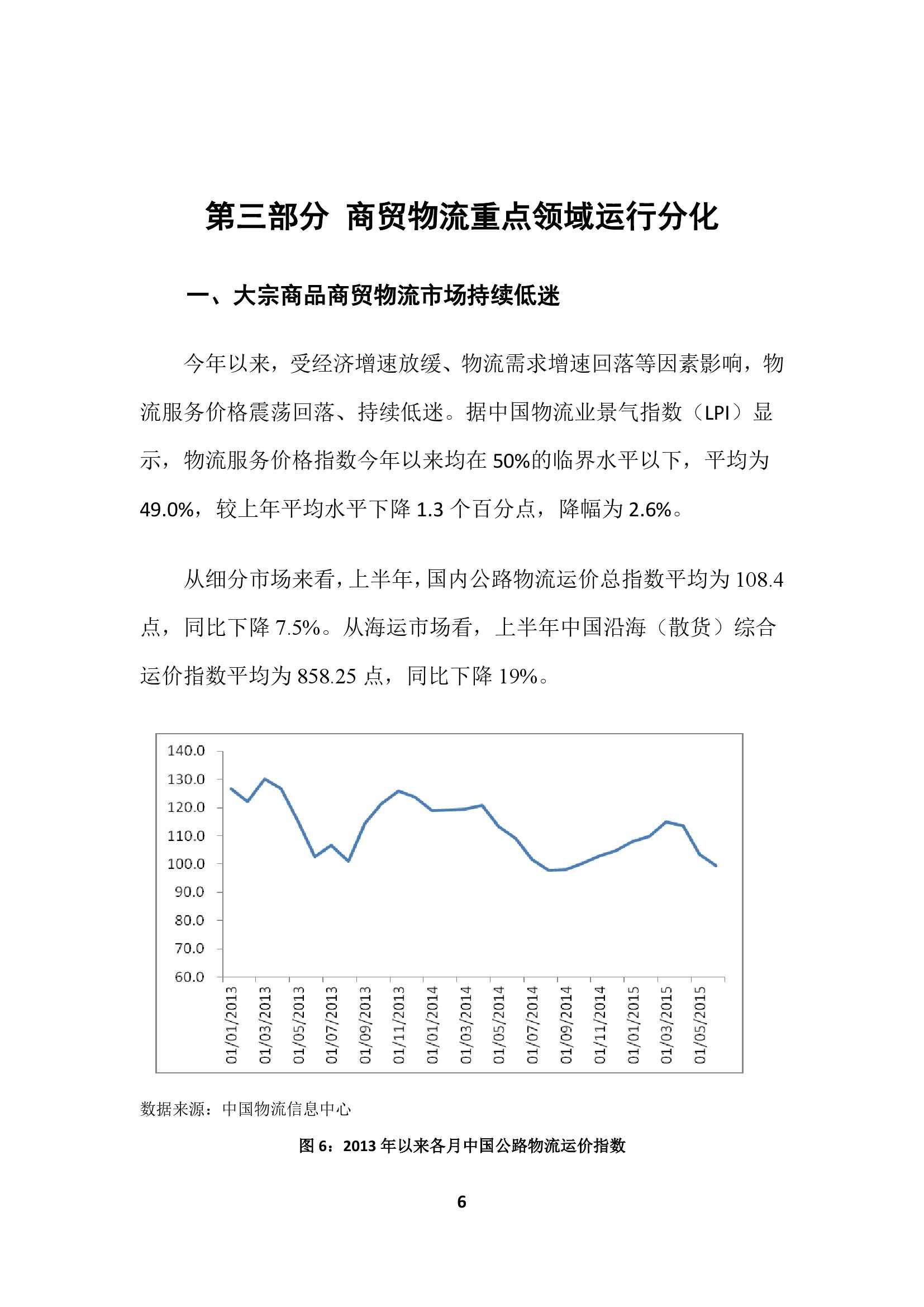 商务部:2015上半年中国商贸物流运行报告 更多阅读:商务部:2017年全年全国吸收外资情况商务部:2020年1-5月我国汽车出口37.3万辆商务部:2019年中国汽车贸易高质量发展报告商务部:关于中美经贸关系的研究报告商务部:消费升级背景下零食行业发展报告商务部:中国电子商务报告2022商务部:2019年中国茧丝绸行业发展报告商务部:2019中国电子商务报告(182页)商务部:2017年Q3中国购物中心发展指数商务部:2017年中国餐饮行业发展报告商务部:中国对外贸易形势报告(2017年秋季)商务部:2016-2017年中国融资租赁业发展报告商务部:2016-2017年中国零售行业发展报告商务部:2016年中国电视购物业发展报告商务部:2020年春季国际商品市场走势