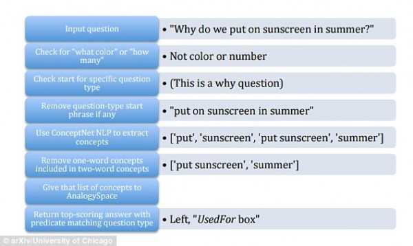 智商测试的范围和形式,取决于测试者的年龄。此次测试中,测试者被问了“你可以在哪里找到一只企鹅?”或“房子是什么东西”之类的问题。测试者可能被要求根据一些线索来确定答案,或者被提问“我们为什么要握手?”。正如你所看到的,这些问题都是计算机可能觉得麻烦的问题类型。