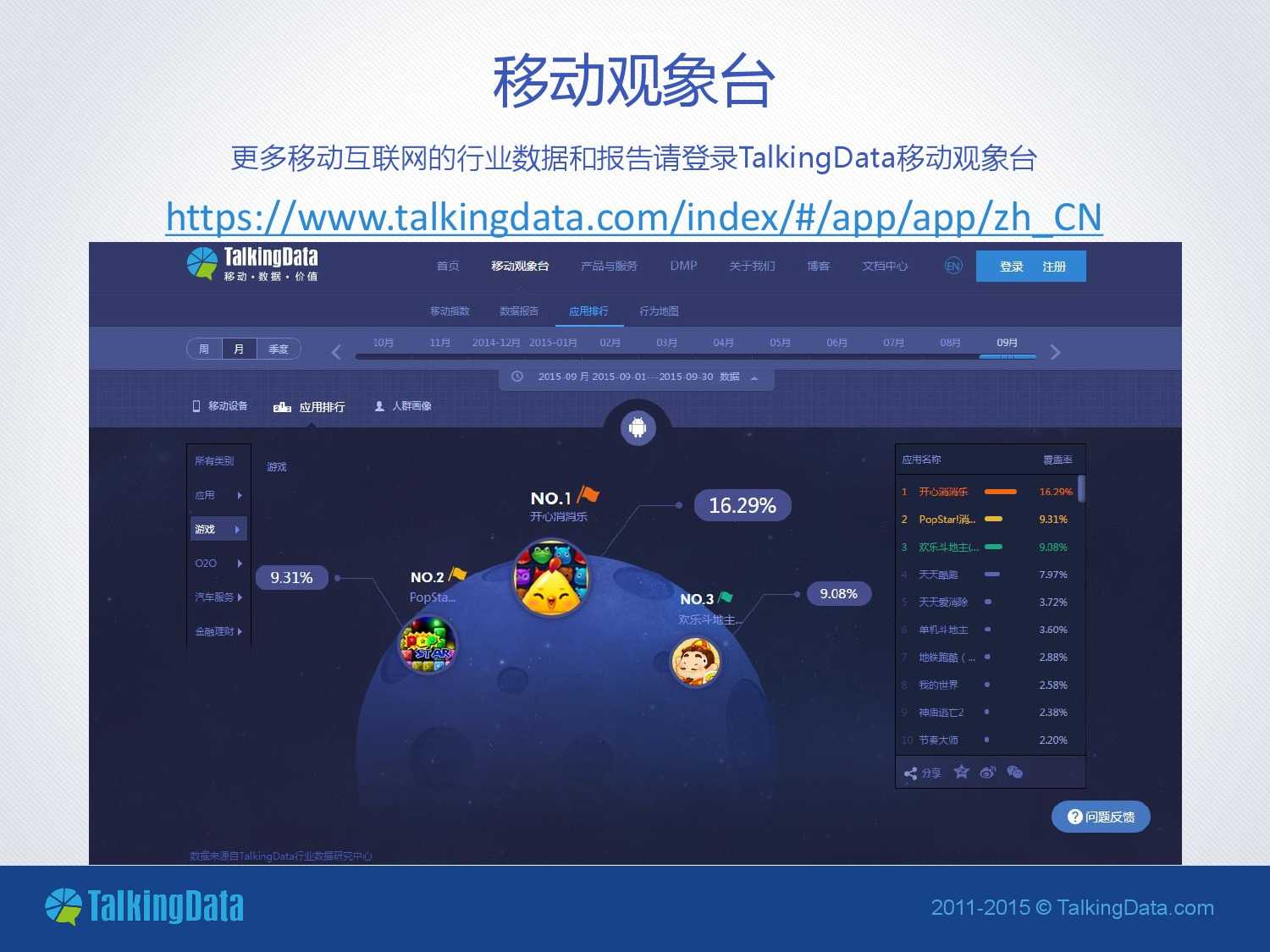 TalkingData:2015年9月移动游戏Benchmark指标数据 更多阅读:TalkingData:2015年10月移动游戏BenchmarkTalkingData:2015年8月移动游戏BenchmarkTalkingData:2015年5月移动游戏BenchmarkTalkingData:2015年7月移动游戏Benchmark指标数据TalkingData:2015年4月移动游戏Benchmark指标数据Newzoo:2015年中国移动游戏收入将达到65亿美元TalkingData:2015上半年移动游戏行业报告TalkingData:2015上半年移动游戏行业报告TalkingData:移动游戏运营数据分析指标白皮书SensorTower:2024年东南亚移动游戏市场洞察中国音数协:2025年1-6月中国游戏市场收入1680亿元,同比增长14.08%Sensor Torwer:2025年移动游戏市场报告Sensor Tower :2024年5月全球热门移动游戏收入TOP10SensorTower:2024年5月全球热门移动游戏下载量TOP10Sensor Tower:2024年4月全球热门移动游戏下载量TOP10