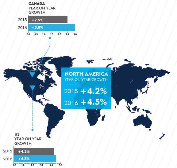 2016年全球广告支出预计增幅4.7%,主要是由于对未来五年全球经济发展良好预期,以及四年一度的大事件推动。