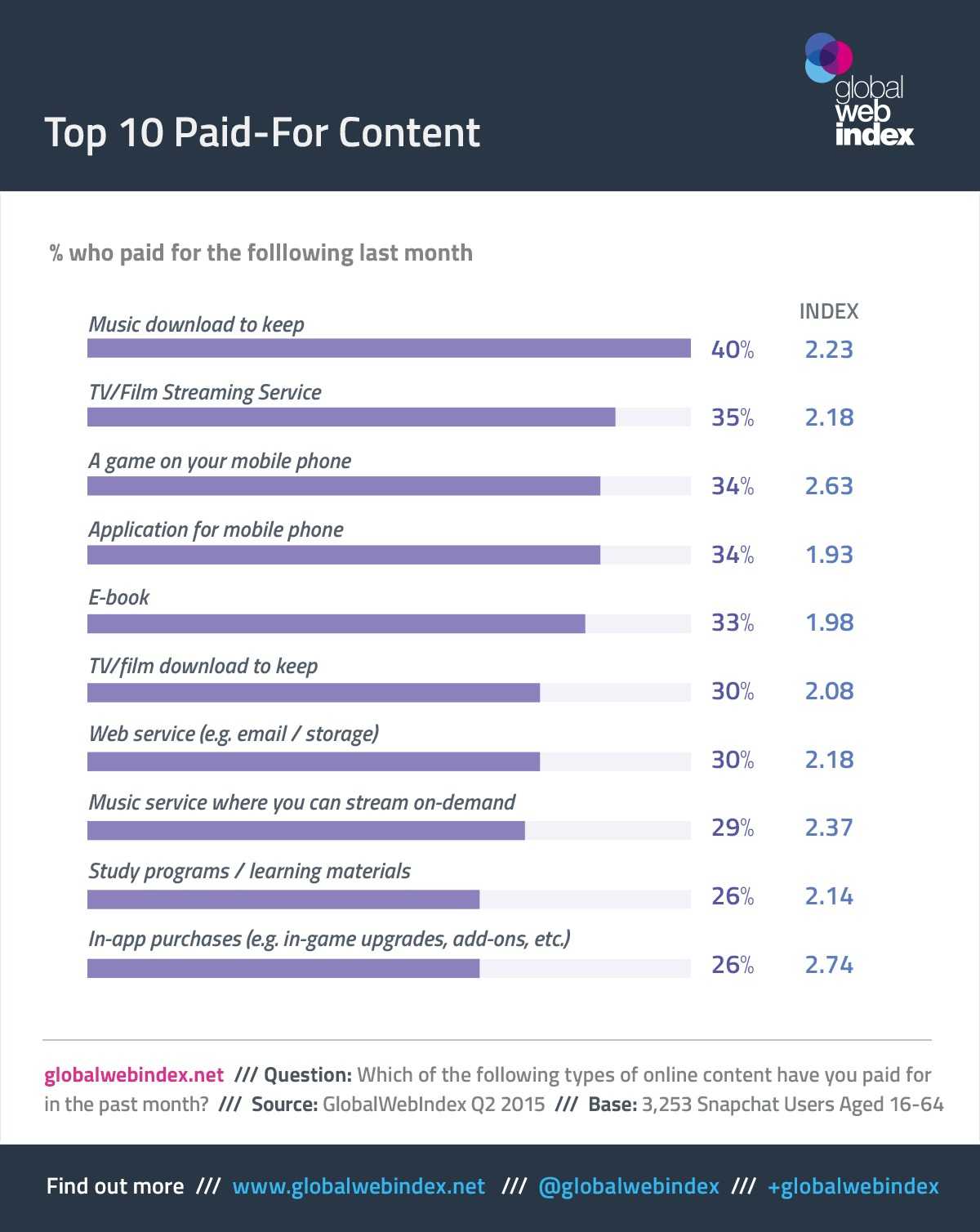 考虑到Snapchat用户购买网络内容时,其应用内购买的前景将更好。Snapchat用户购买网络内容的可能性是平均值的2.7倍。Snapchat用户很显然对重播功能感兴趣,Snapchat的应用内购买计划很可能成功。