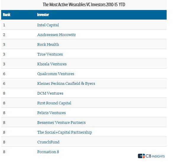 早期交易最活跃的投资者仍然是Intel Capital;紧随其后的是Rock Health,关注数字保健和投资;Khosla Ventures排在第三位,投资包括Narrative的可穿戴相机和语音功能可穿戴初创企业Theatro。