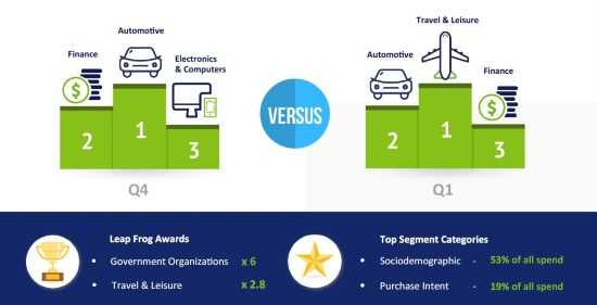 但旅游行业却和全球的下降趋势相反,是在受众数据上的支出最多的行业,在欧洲的排名从2014年第四季度的第7位上升到第1位。