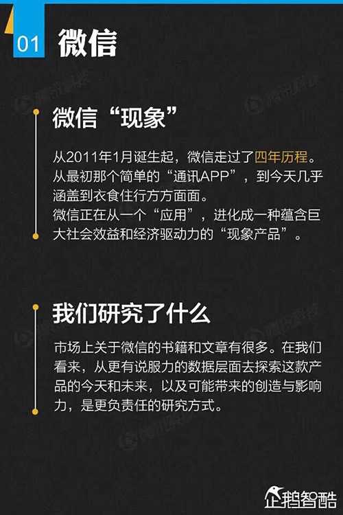 (除特别注明来自微信公众平台的数据外,《首份微信影响力报告》中其他数据均来自严肃独立的第三方调研)