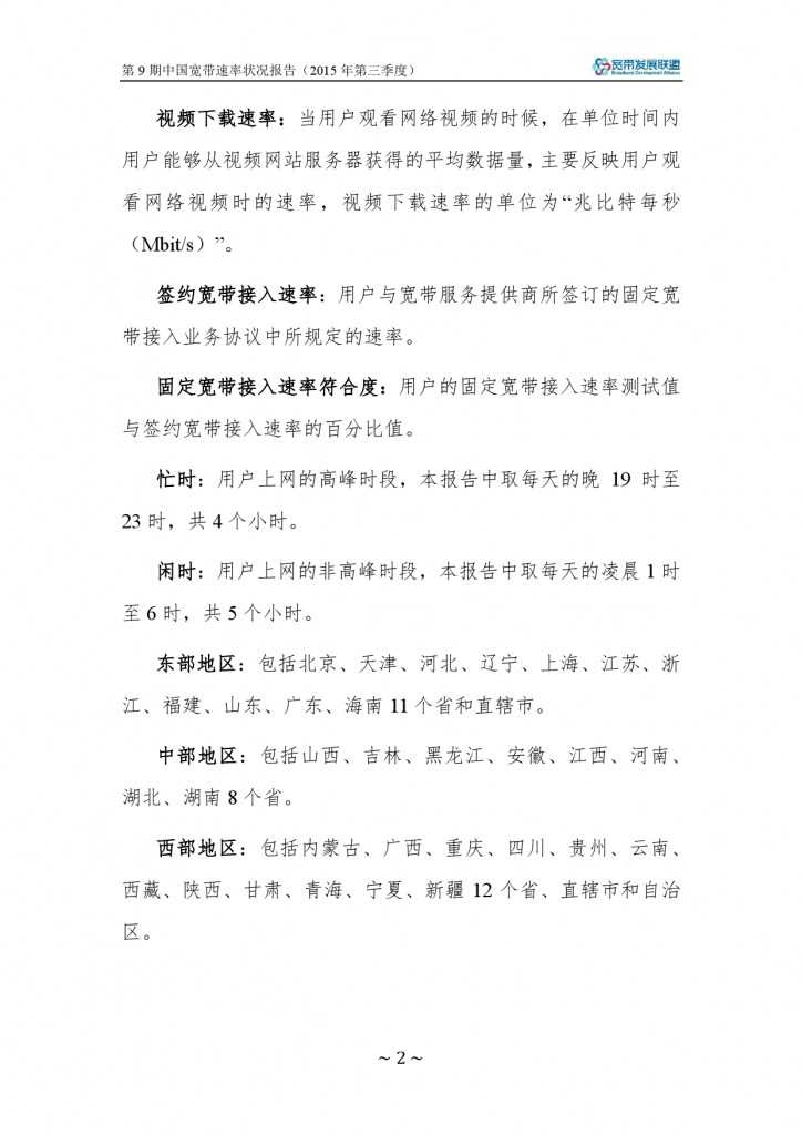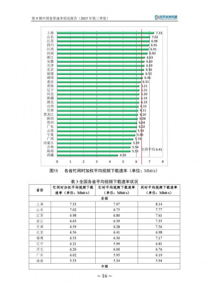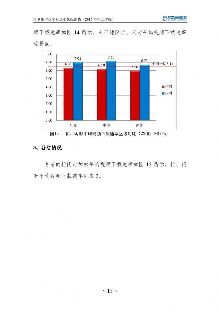 附:宽带发展联盟:2015年Q3中国宽带速率状况报告
