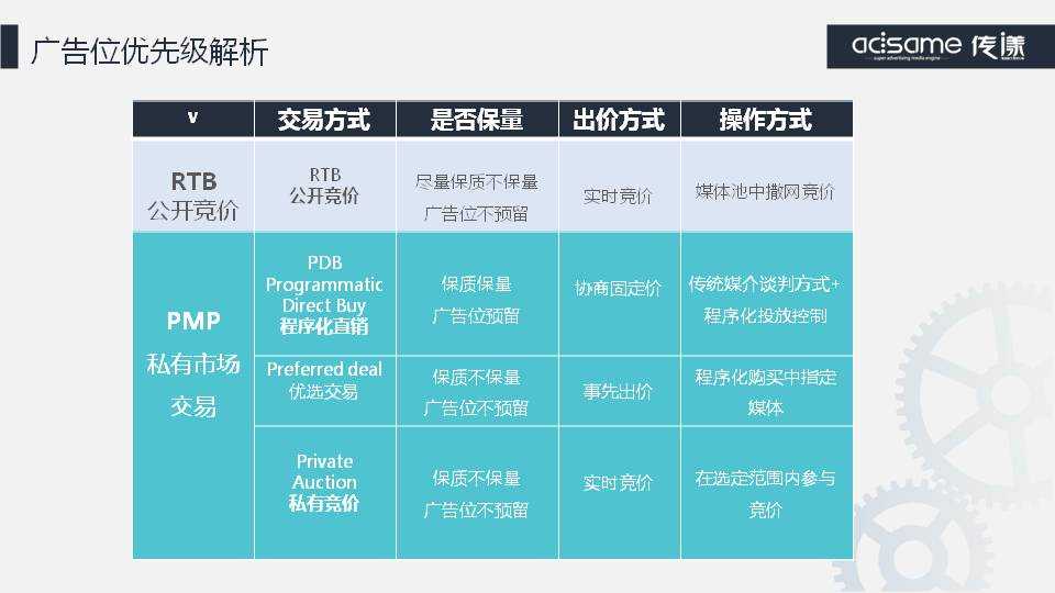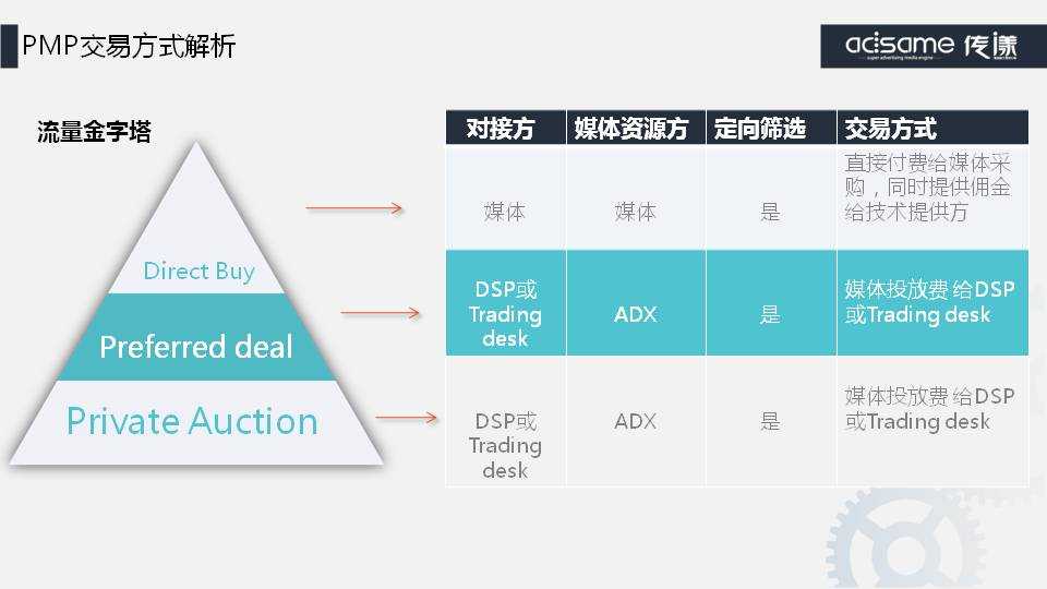 PMP私有化市场分为三类:PDB、Preferred Deal和Private Auction。从媒体资源角度,是个完整的流量金字塔, 优质媒体资源重量级按照阶梯式进行三种方式的交易。这三种形式的对接方、发起方、交易模式等方面各不相同。通过对比,我们可以看出: