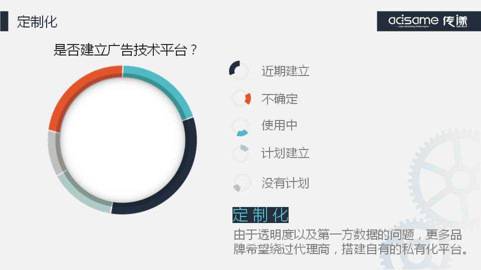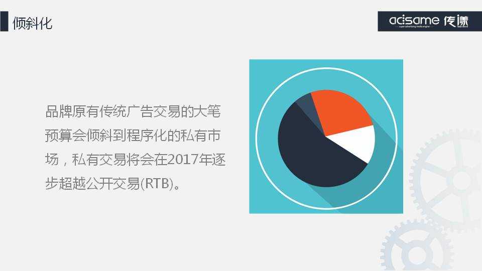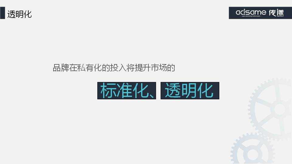 继PC端之后,移动端和视频端的私有市场正在发展。王跃强调,未来PMP私有市场将朝着大型化、品牌化、倾斜化、定制化、透明化等方向延伸。PMP的运营商将以大型门户垂直和视频网站为主;更多的品牌广告主将成为私有市场的主要投放客户;随着程序化购买的不断深入,私有交易将逐步超越公开交易;更多的企业考虑搭建私有技术平台;品牌在私有化的投放将提升市场的标准化与透明化。